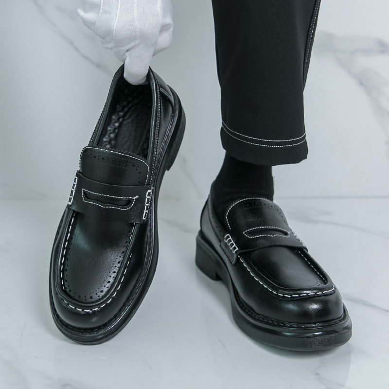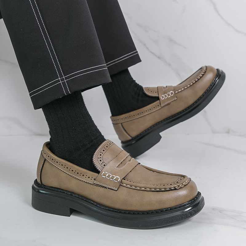 英伦风复古休闲皮鞋男款布洛克雕花一脚蹬商务正装结婚新郎牛津鞋