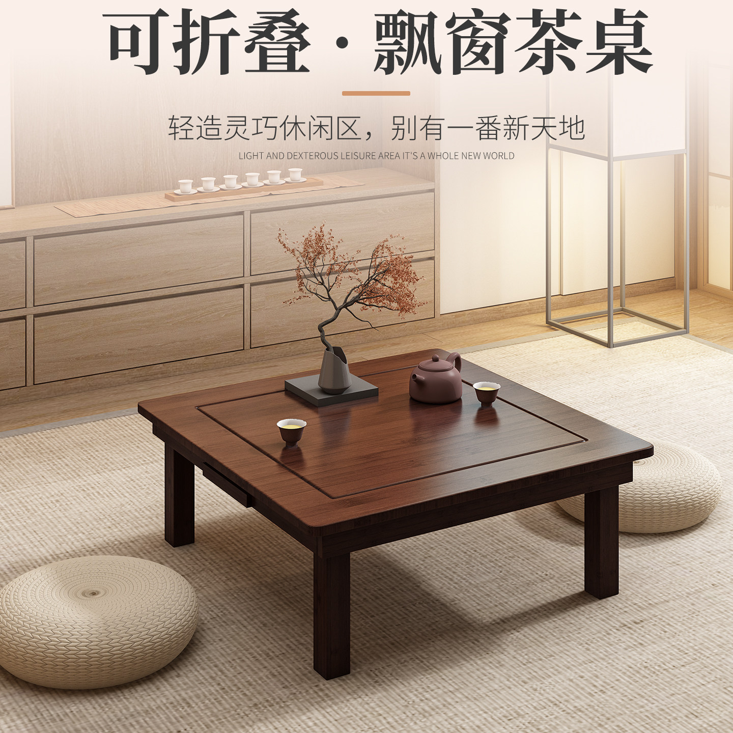 折叠飘窗茶几小桌子榻榻米炕桌家用实木吃饭农村矮桌子坐地正方形