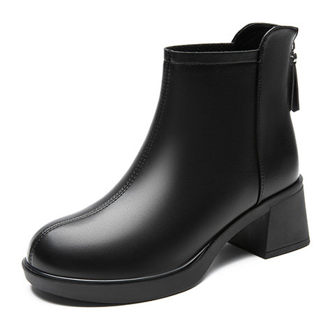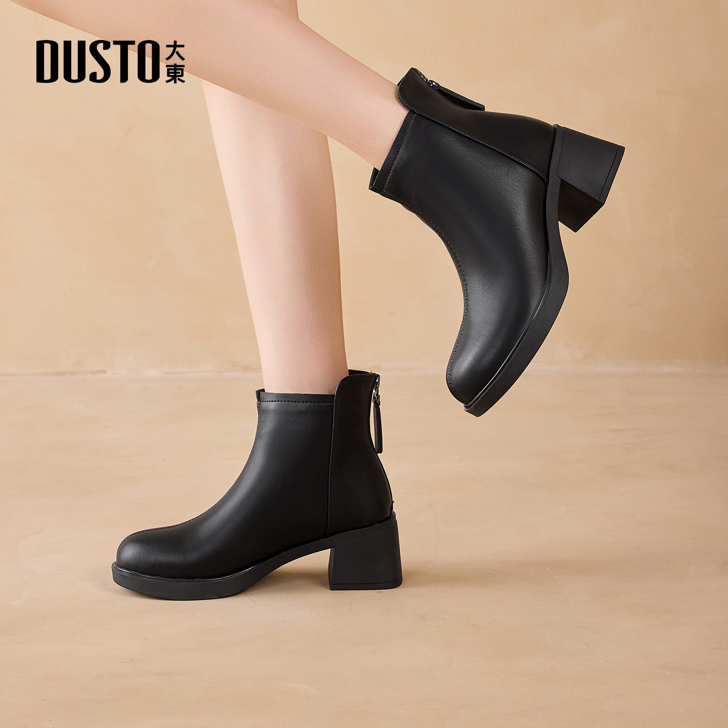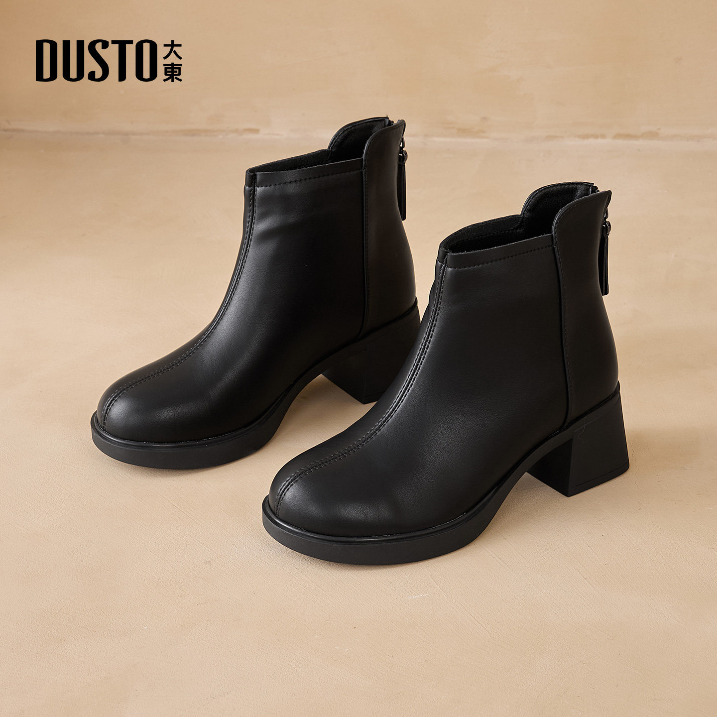 大东官方正品黑色粗跟短靴瘦瘦靴