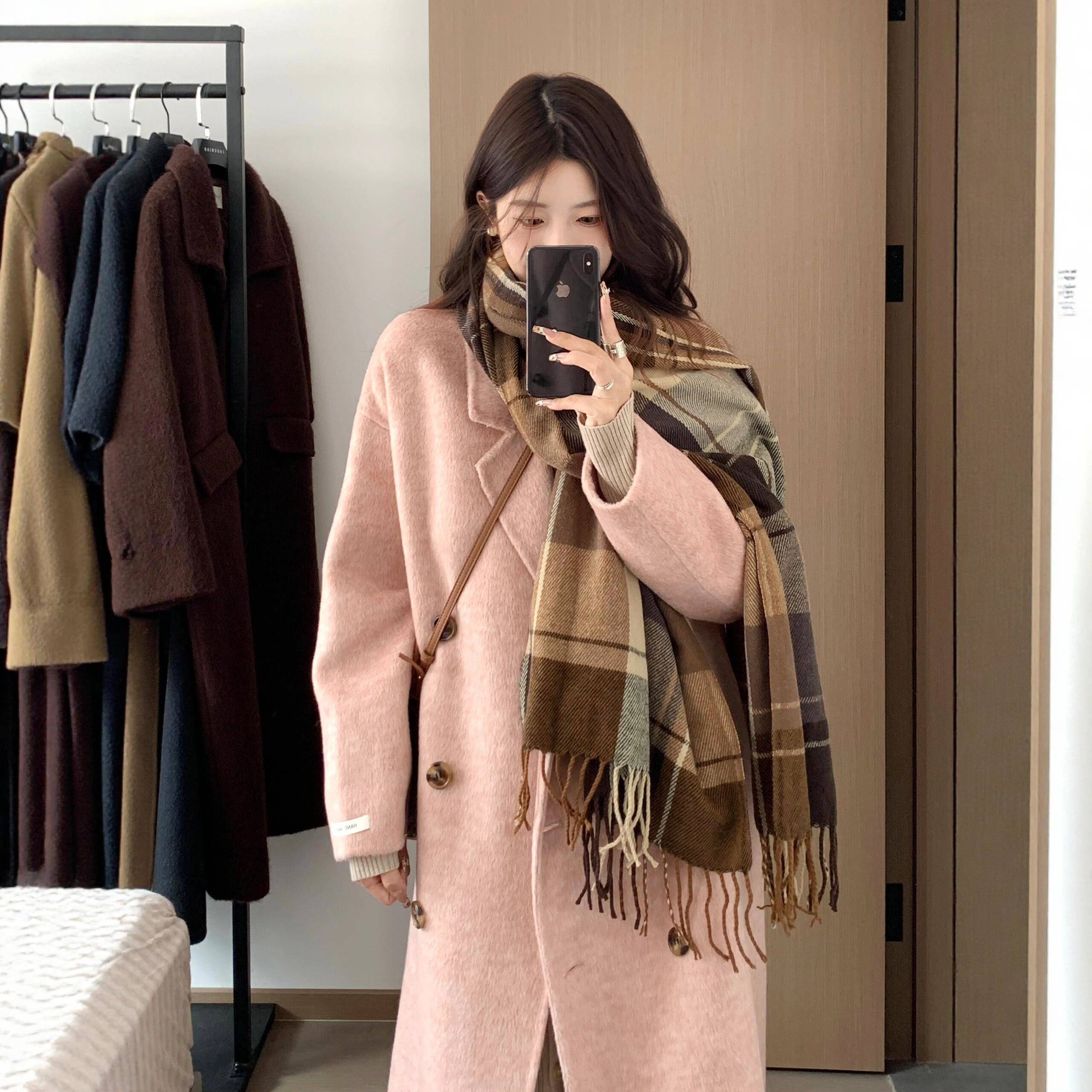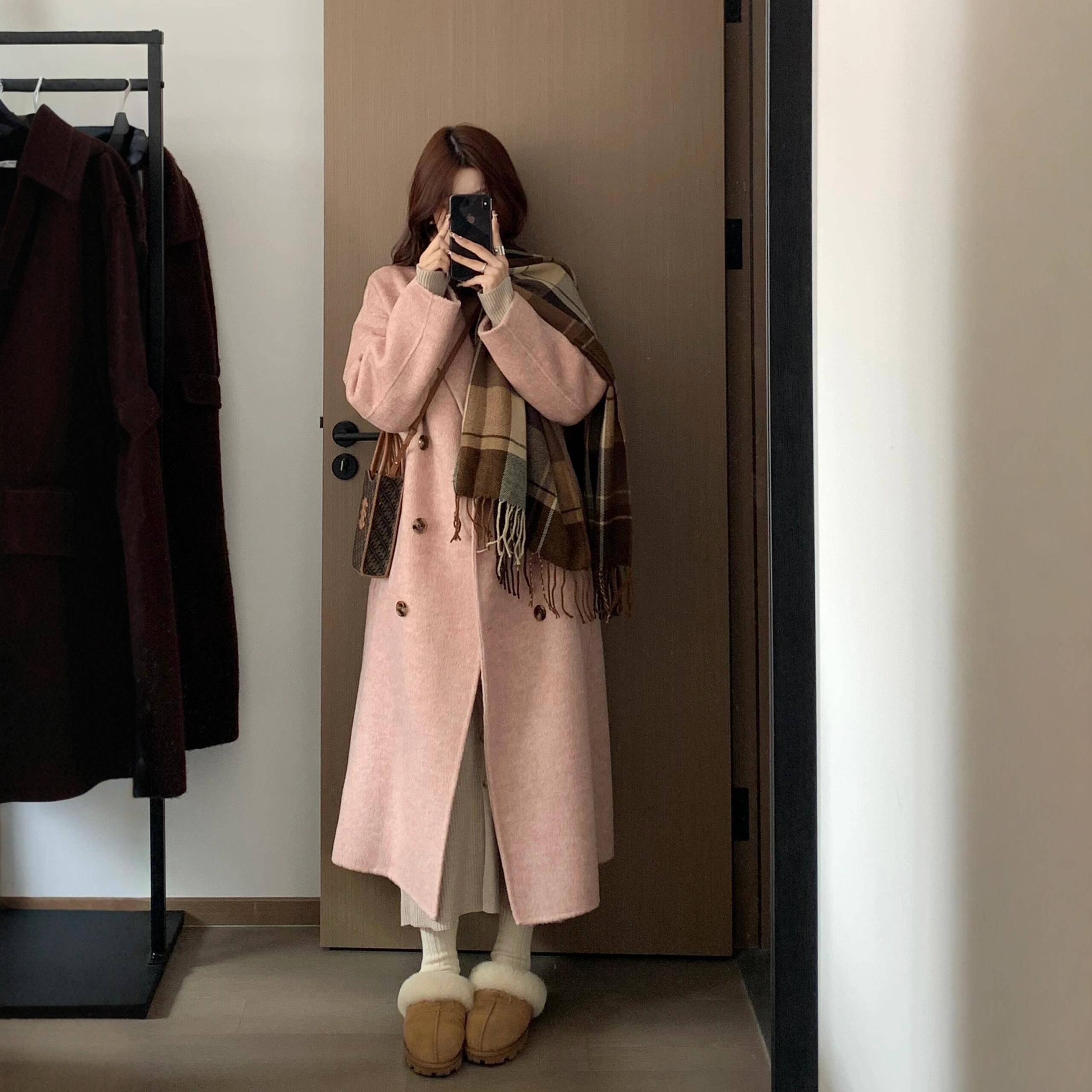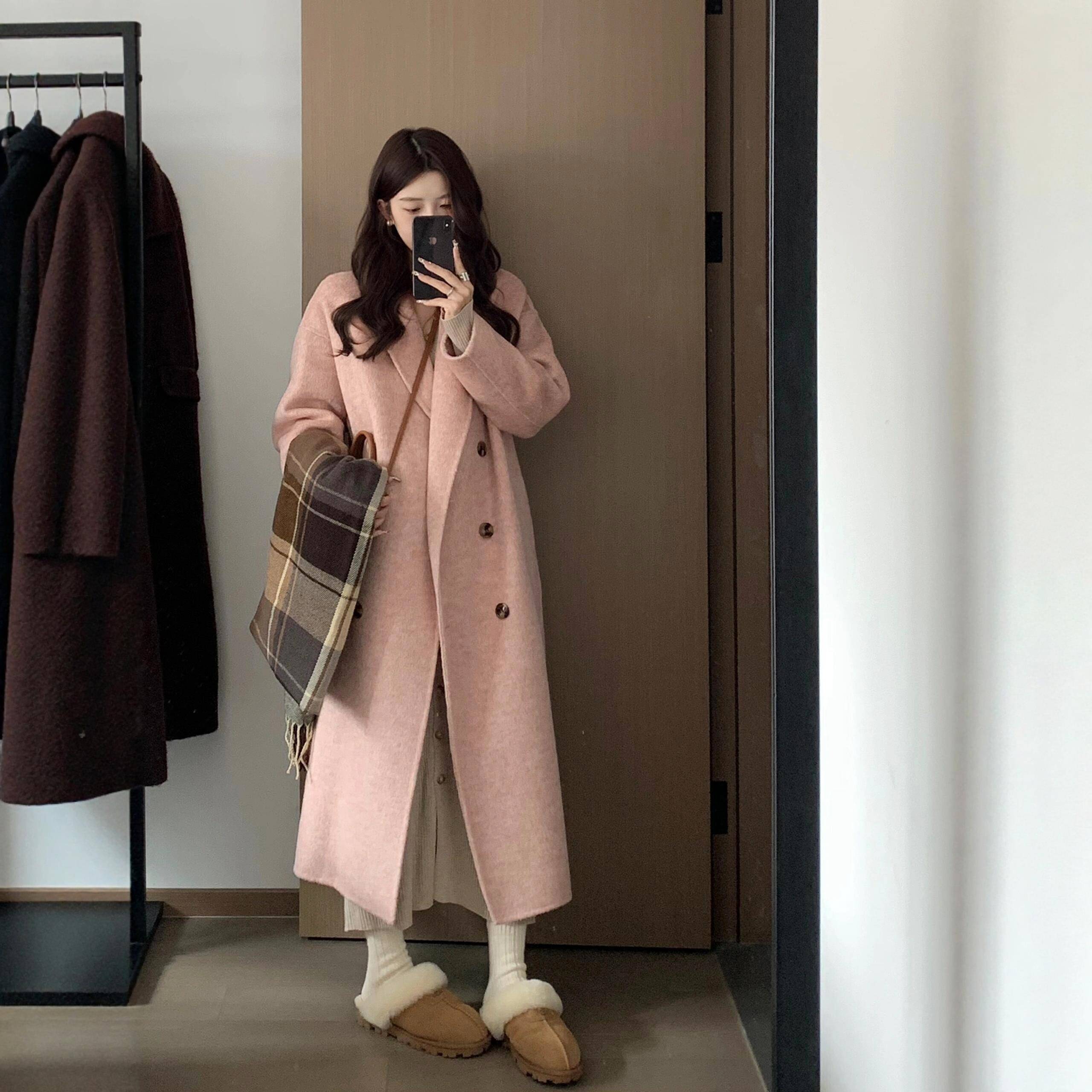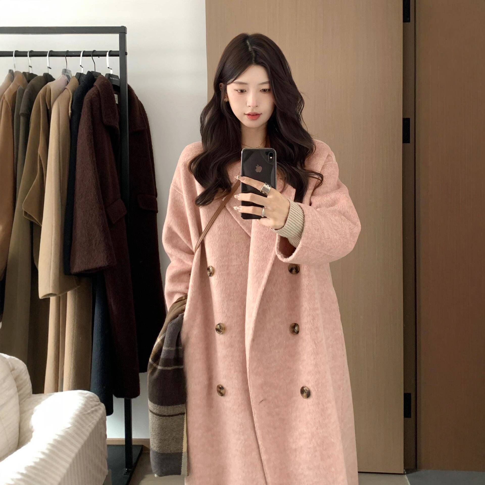 毛呢外套女中长款小个子2025新款冬季加厚高级感正肩羊绒呢子大衣