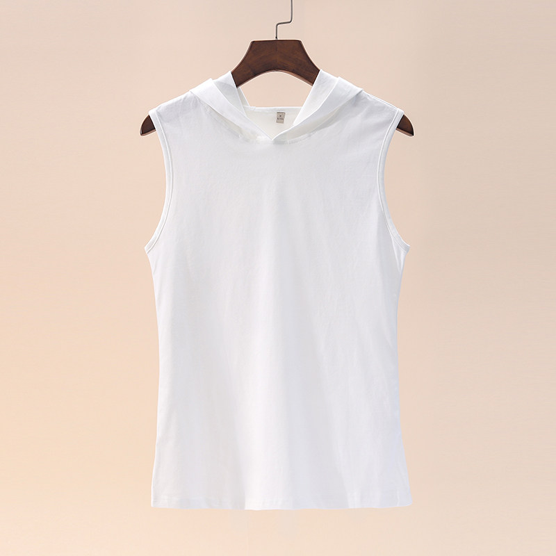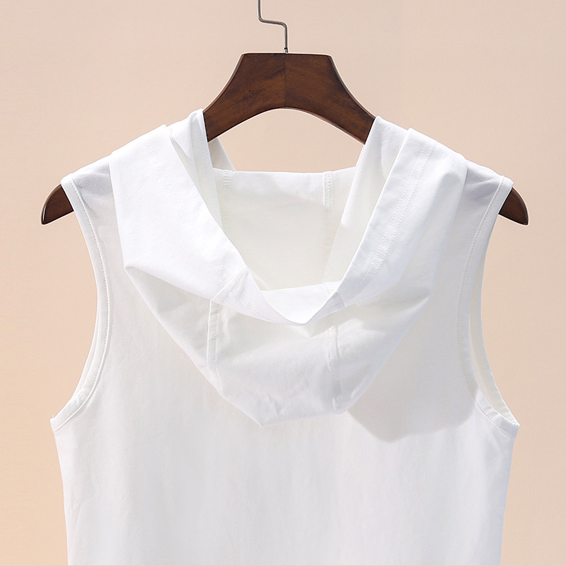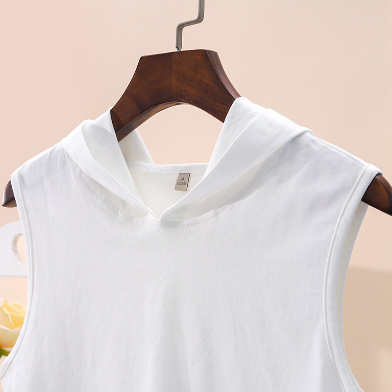 带帽叠穿无袖打底背心女白t恤卫衣内搭帽衫棉连帽打底衫小背心