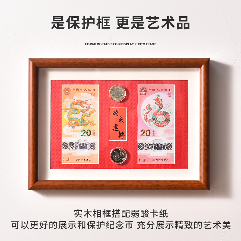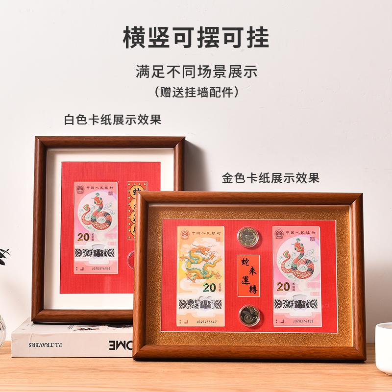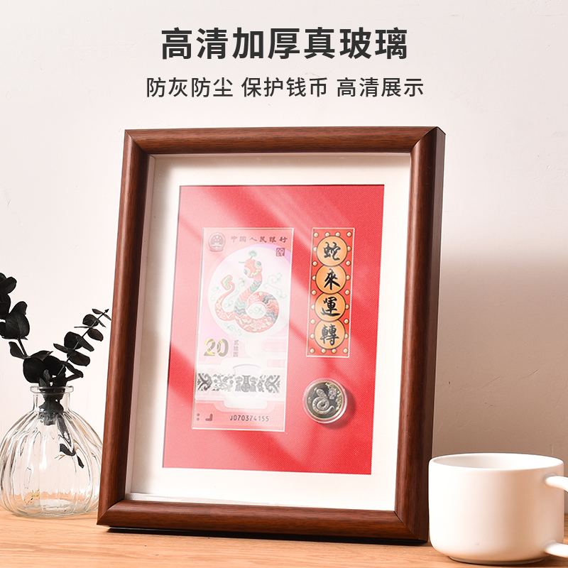 纪念钞展示相框摆台2025蛇新年纪念币生肖邮票收藏收纳装裱框摆件