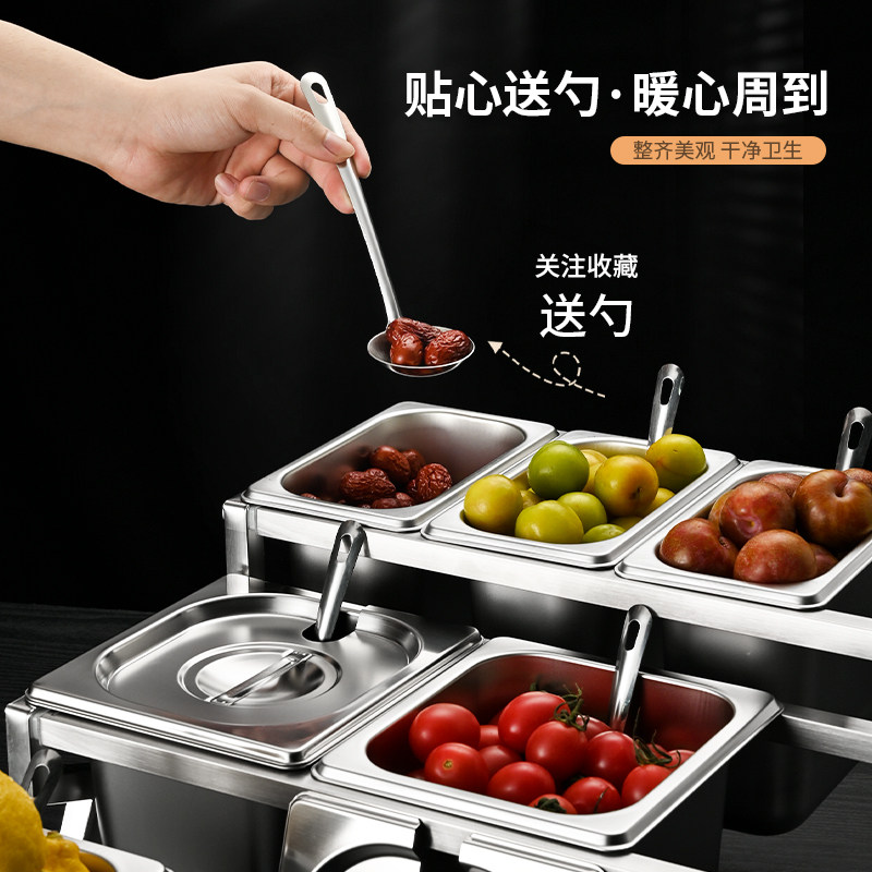 304不锈钢调料盒带架 商用厨房火锅店分格调料台奶茶店专用小料架