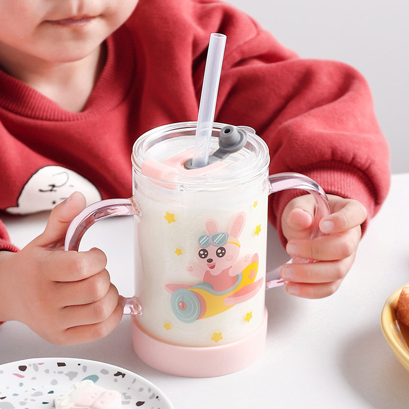 儿童喝奶吸管杯水杯宝宝奶杯直饮喝水杯子家用玻璃杯带刻度牛奶杯