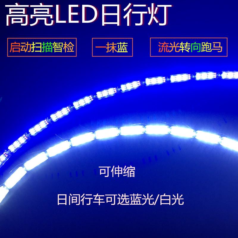 超亮灯流水转f向跑马灯汽车伸缩led日行灯眉一抹蓝流光泪眼导光条