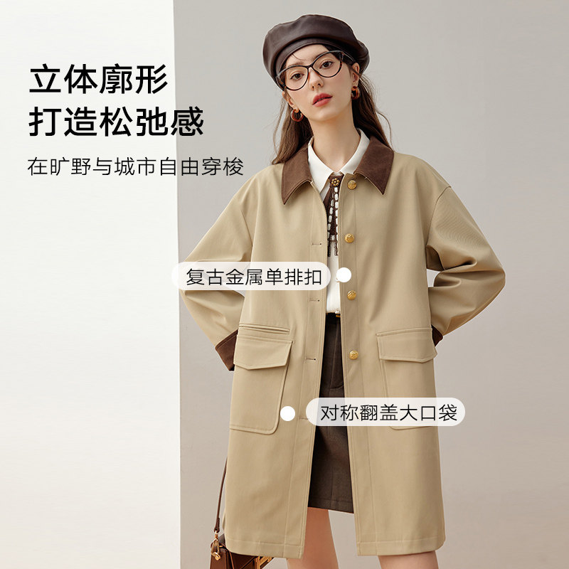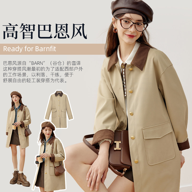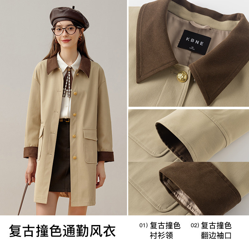 KBNE巴恩风女款卡其色三防长袖大衣外套女新款长款风衣小个子春秋