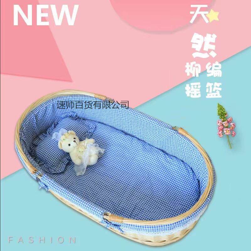 藤编婴儿摇篮床车载安抚睡篮宝宝床新生儿便携手提篮实木摇篮摇窝
