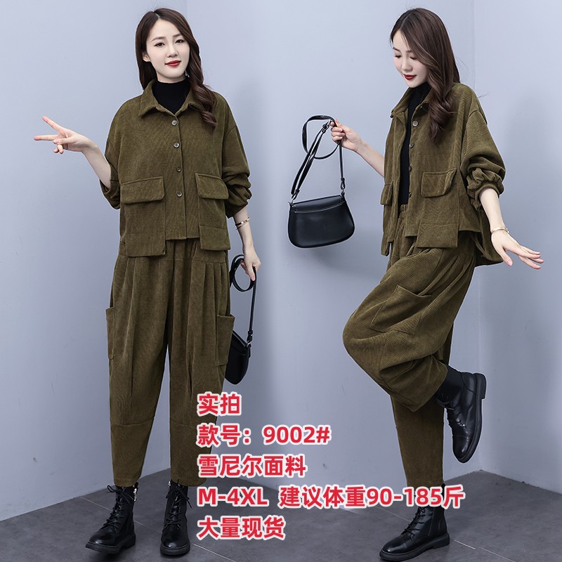 时尚休闲雪尼尔套装女秋冬穿搭一整套妈妈装宽松显瘦哈伦裤两件套