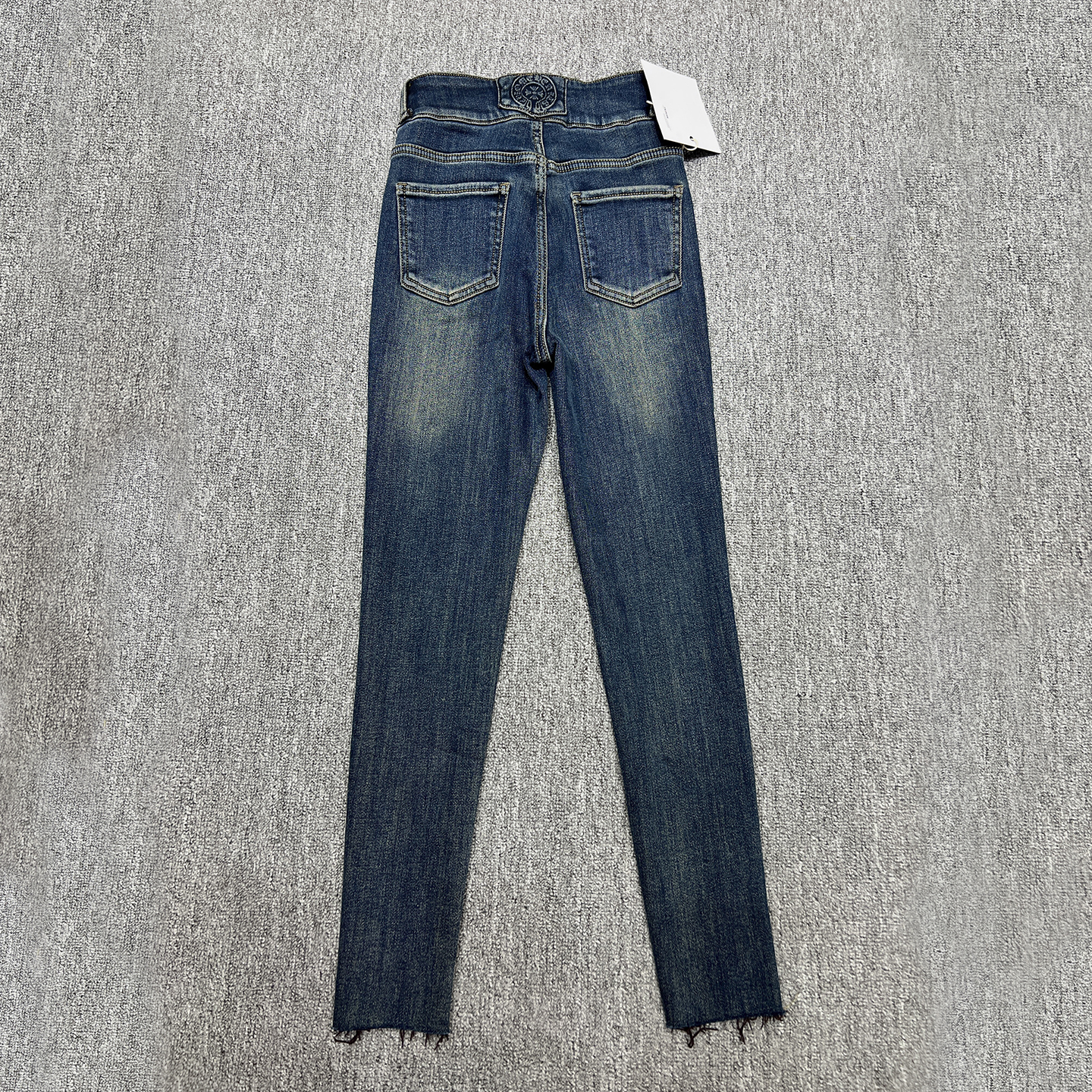 时髦腰头设计感植绒小脚牛仔裤女2025冬季新款高弹修身显瘦铅笔裤