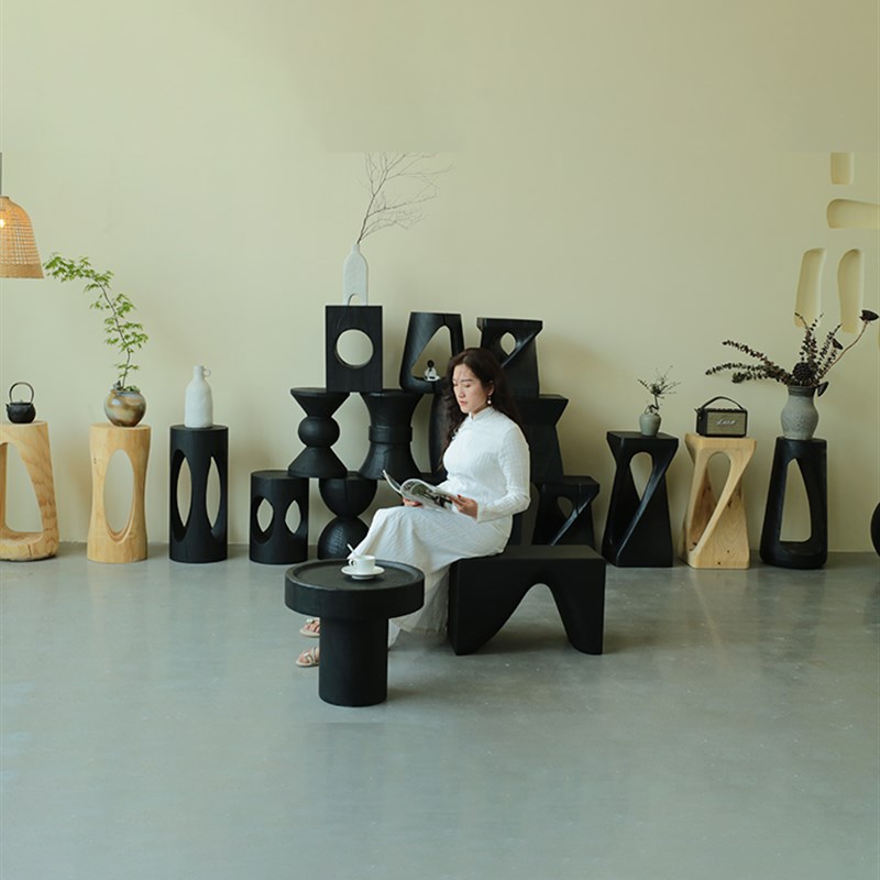 碳化黑色木墩实木边几凳子原木角几墩子坐凳木头R树桩摆件木桩圆