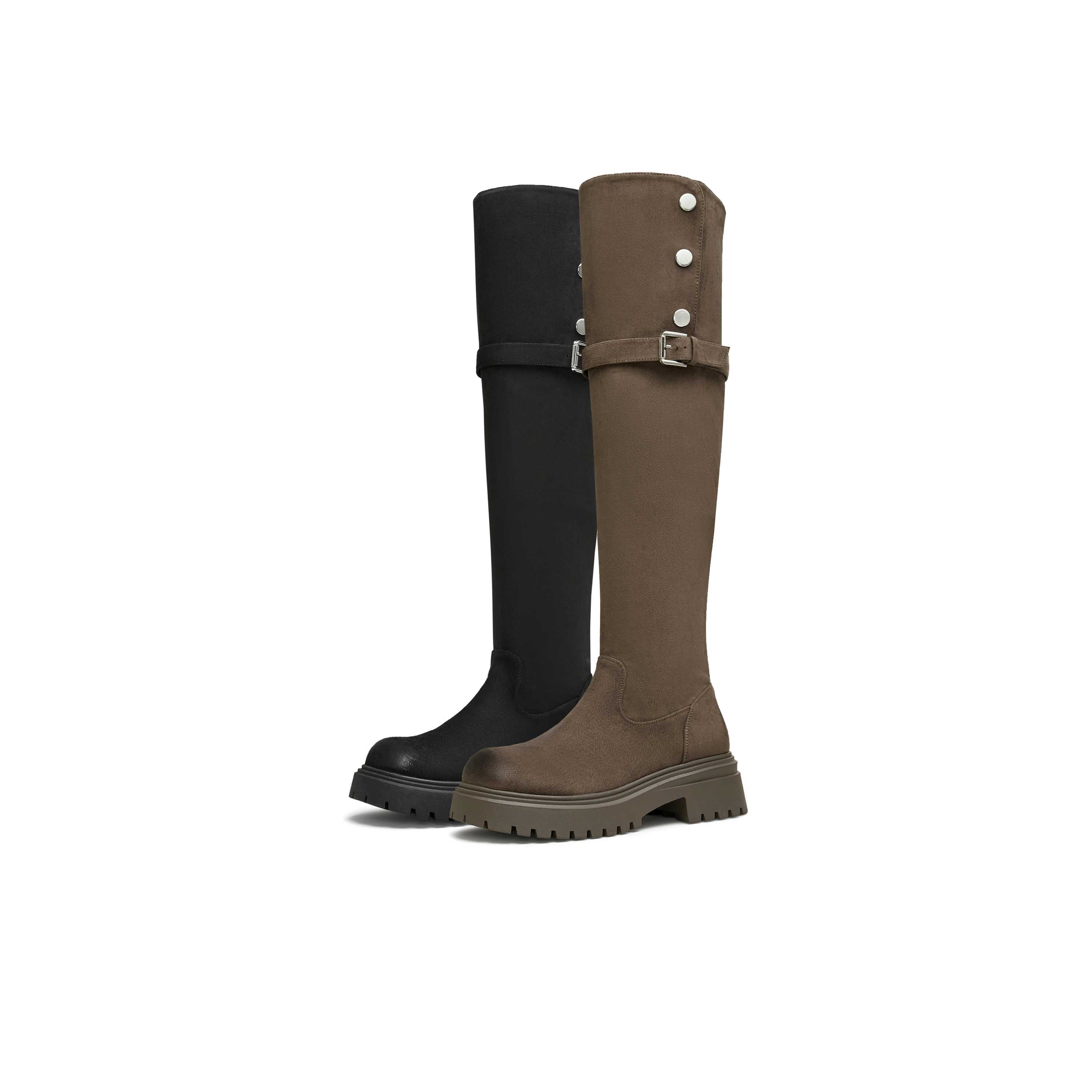 天美意复古厚底过膝弹力时装靴女高筒休闲长靴冬新款KNZ06DC4