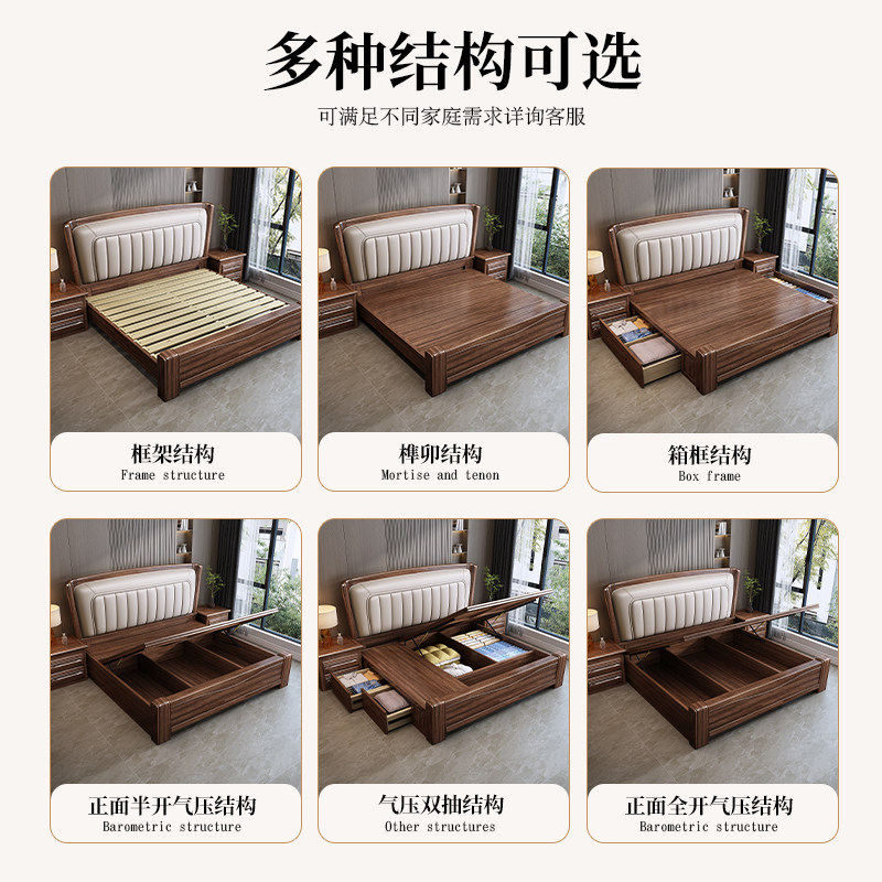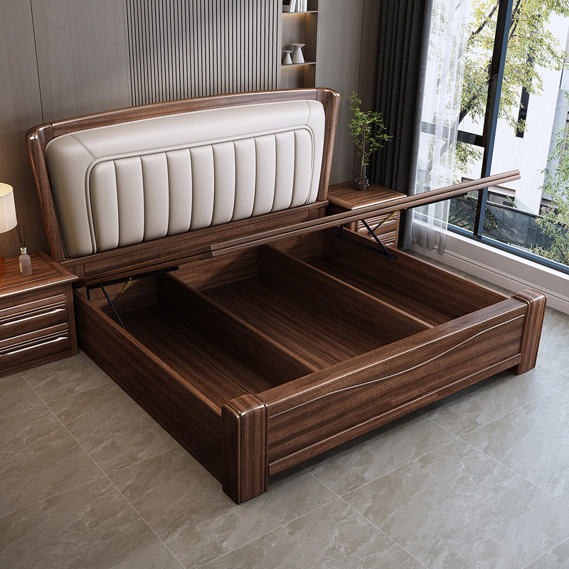 全友家居胡桃木实木床中式软包现代简约主卧室1.8米大床轻奢双人