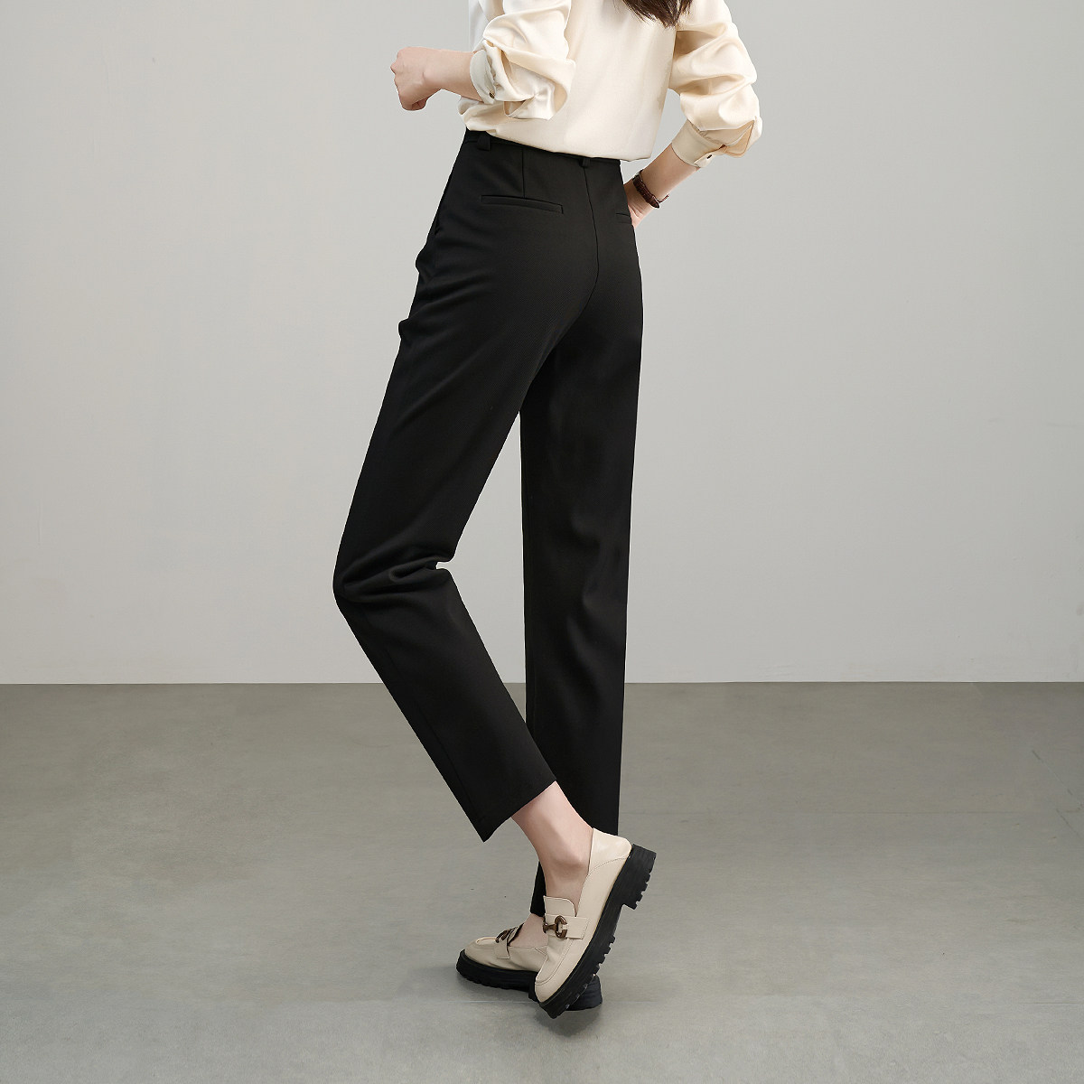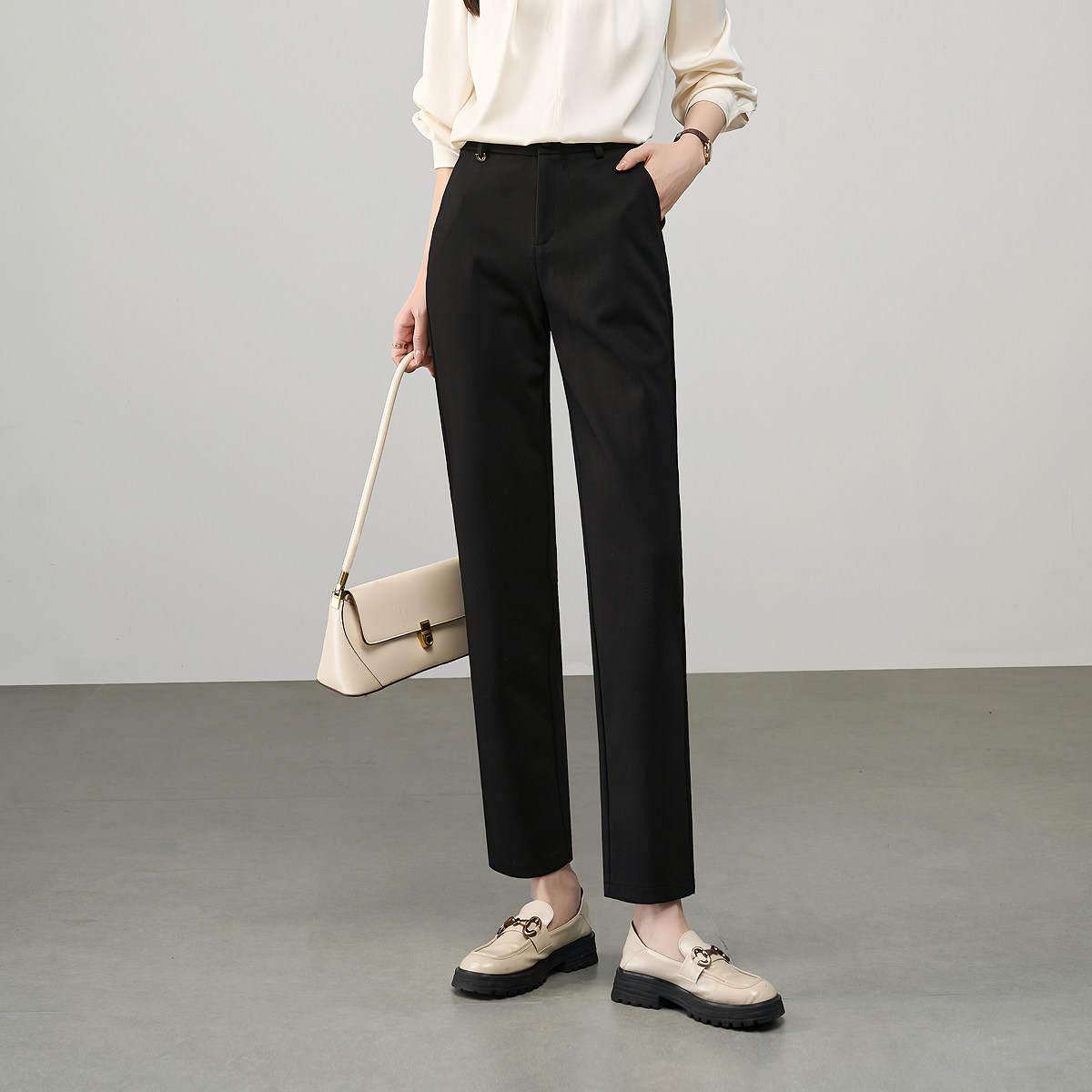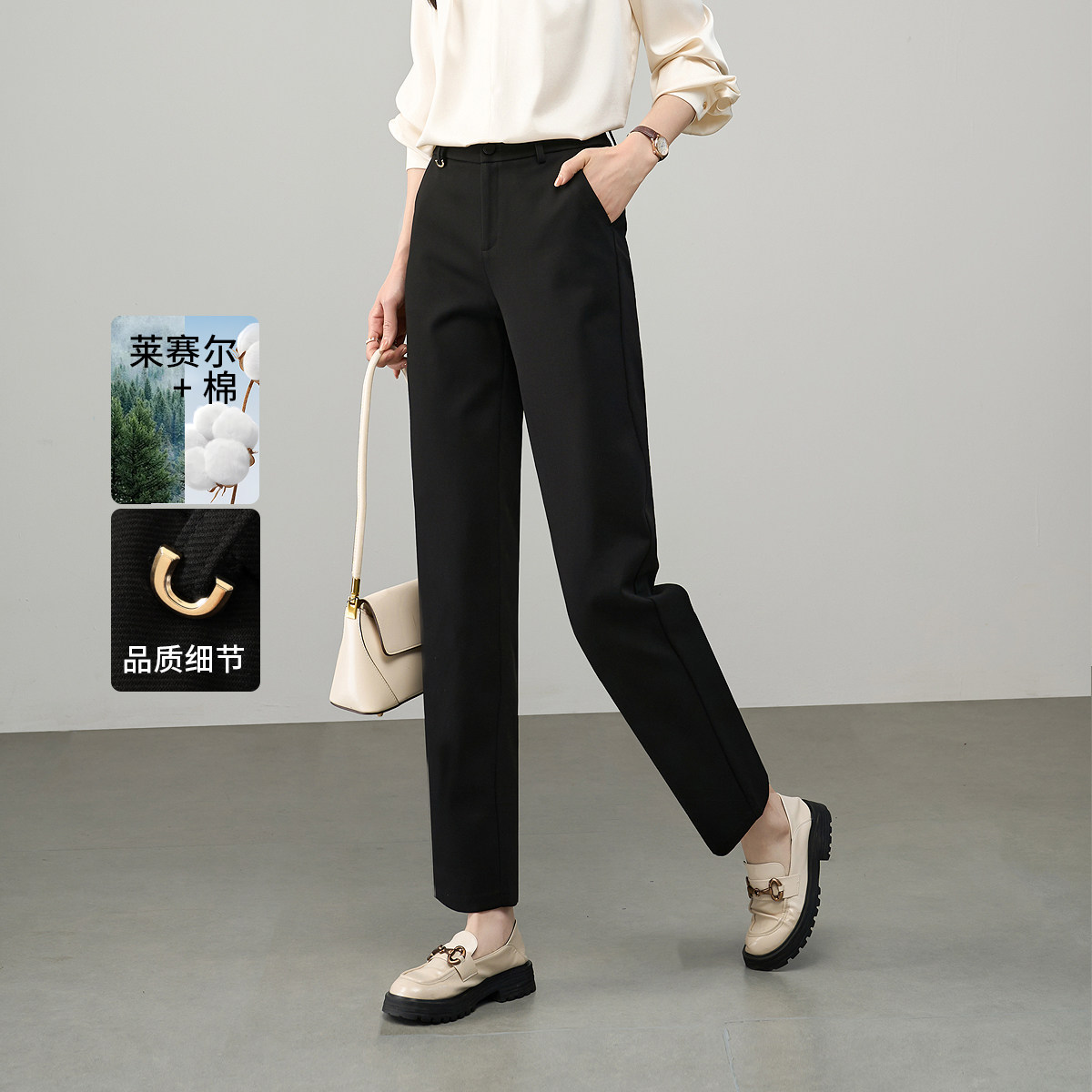 娅丽达黑色直筒裤女休闲裤子2025秋新款女裤莱赛尔棉弹烟管裤西裤