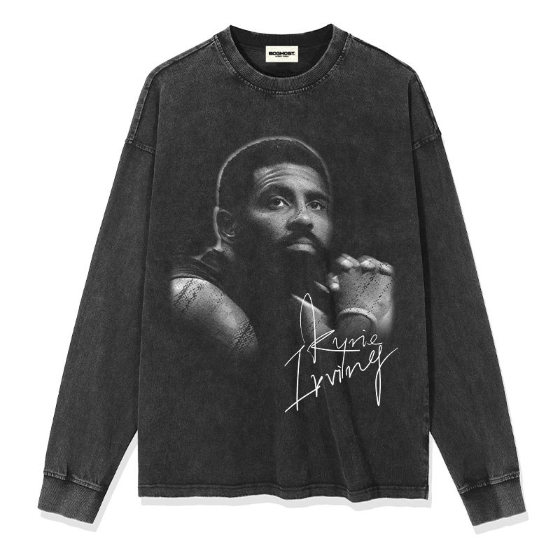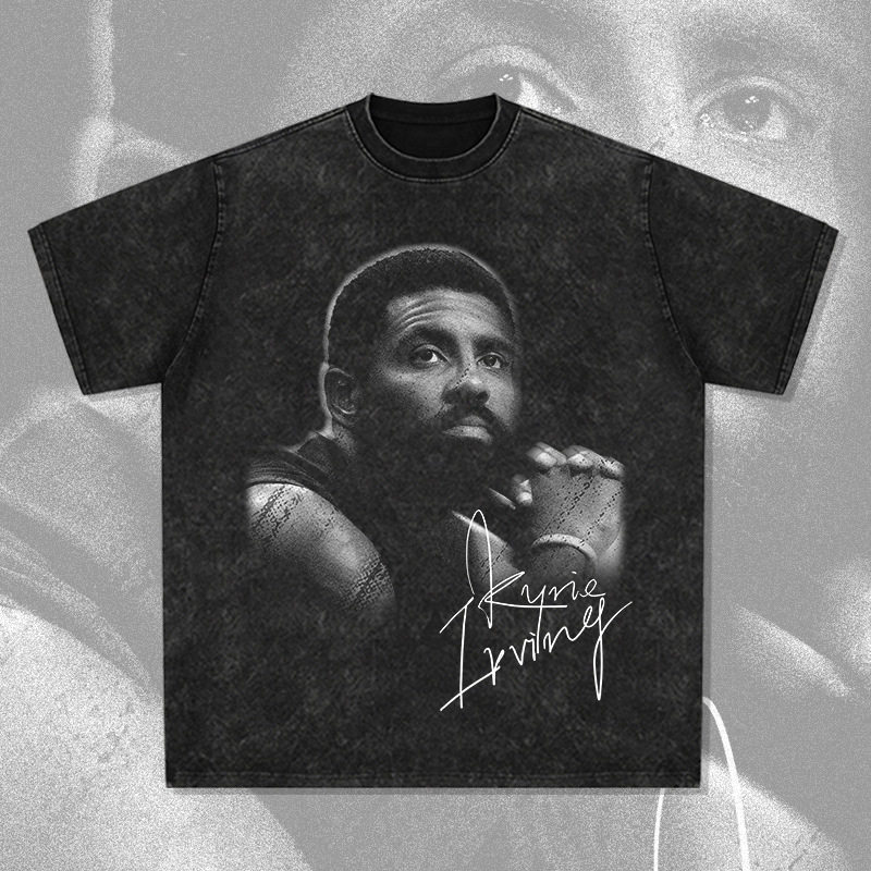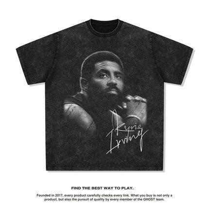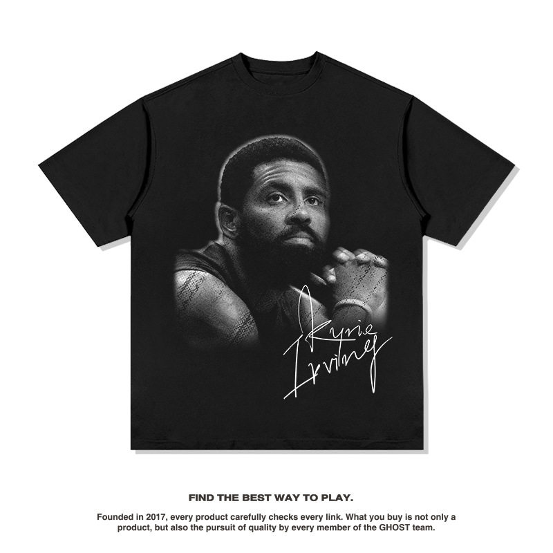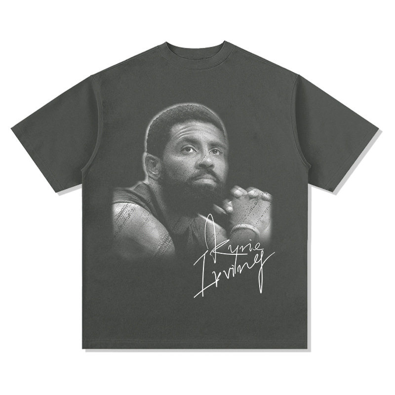 跨境复古美式欧文Kyrie Irving印花短袖t恤重磅纯棉宽松潮男上衣