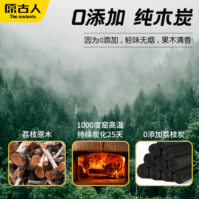 果木炭烧烤碳无烟家用碳烤炉专用纯木炭围炉煮茶正宗荔枝原木炭块