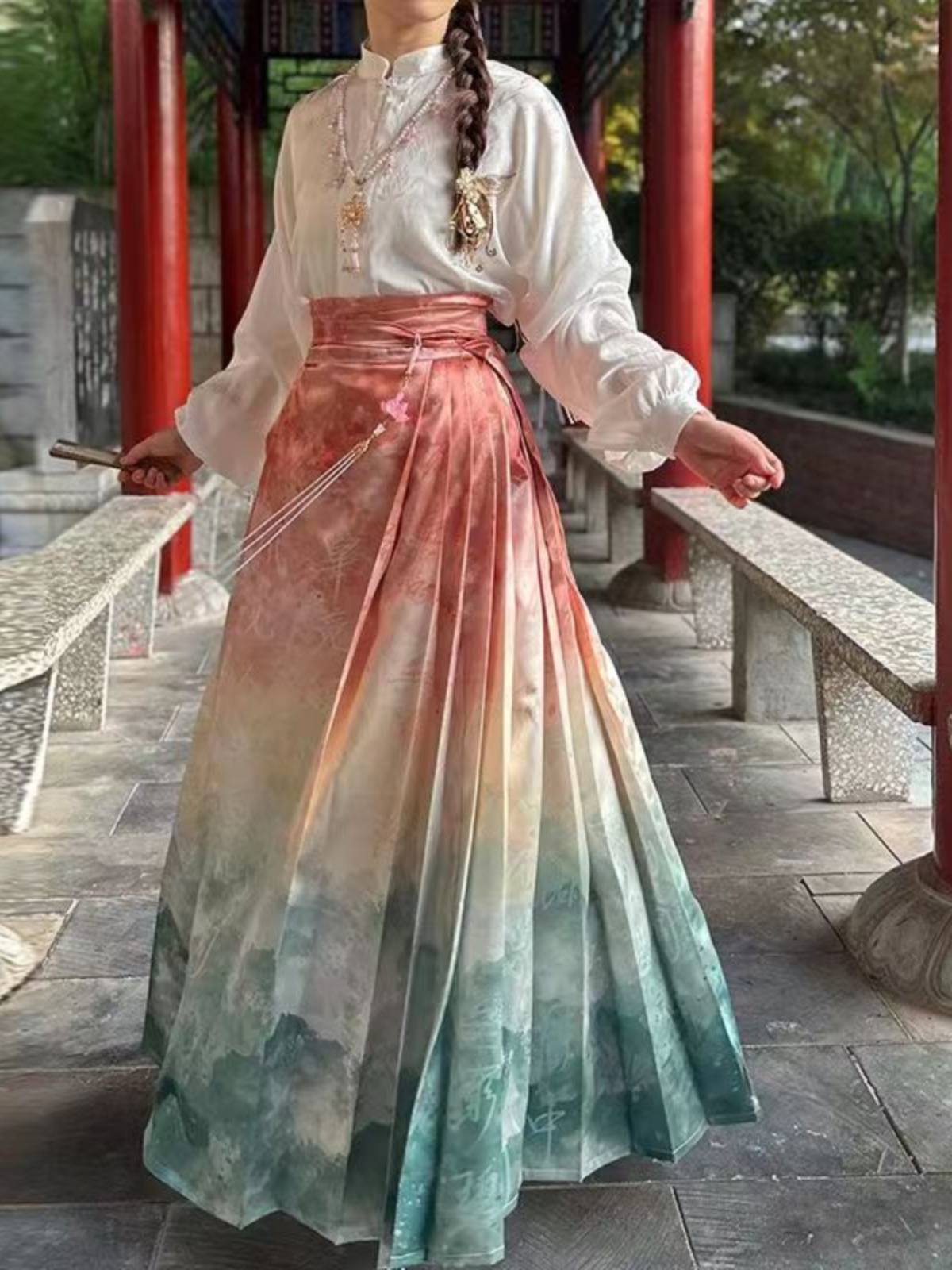 【蜜桃乌龙马面裙新中式国风温柔明制日常汉服通勤印花氛围感显瘦
