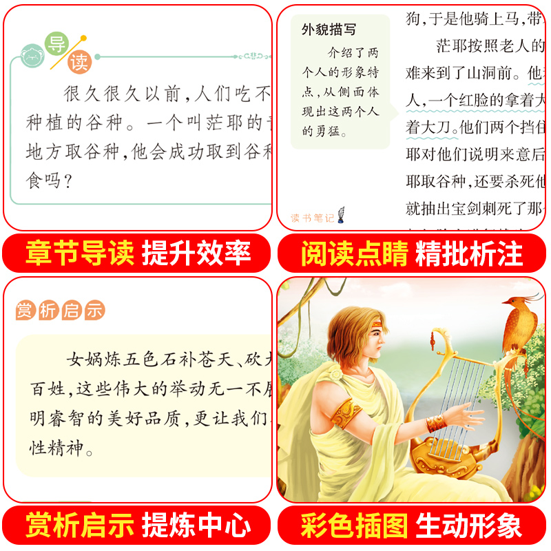 彩图注音】全套4册中国古代神话山海经世界神话传说希腊神话故事四年级上必读正版的课外书快乐读书吧上册阅读书籍人教版上