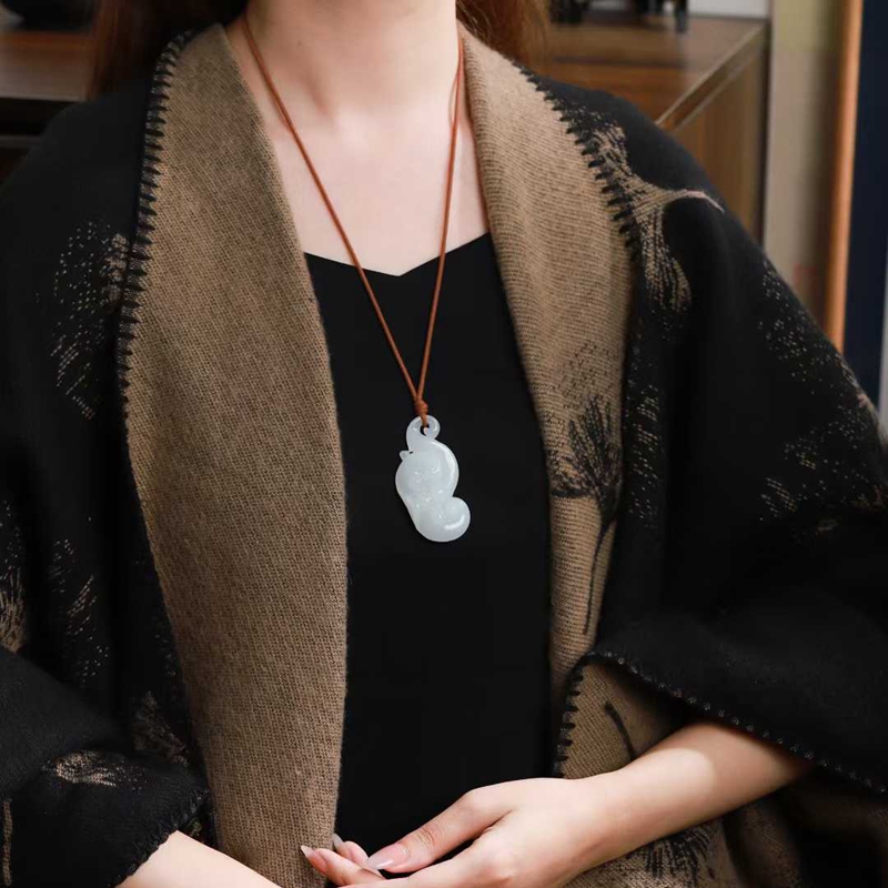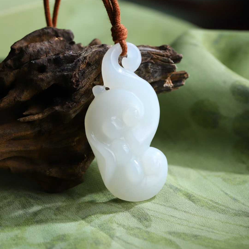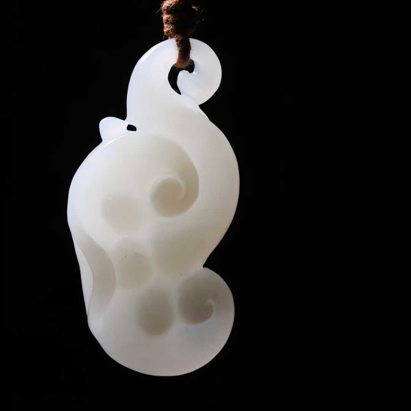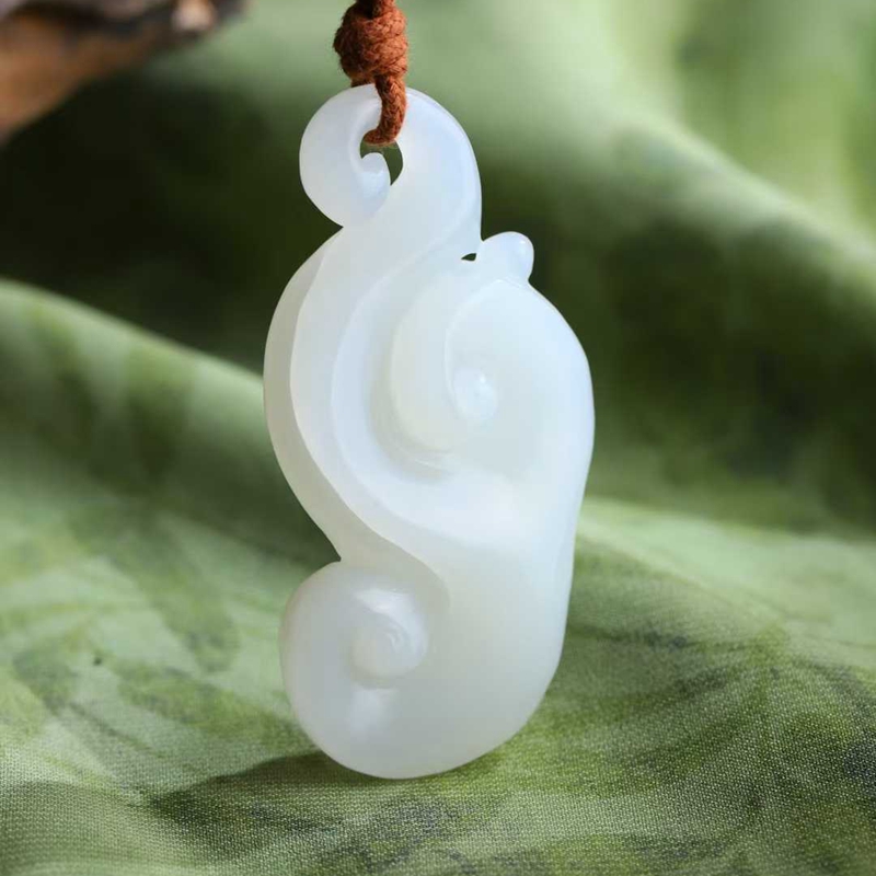 天然新疆和田玉玉器工厂店青海料老料白色简约款玉石如意吊坠挂件