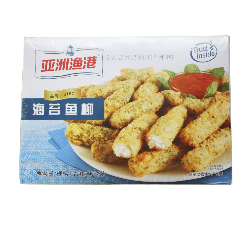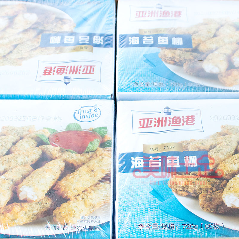 亚洲渔港海苔鱼柳720g60枚鳕鱼冷冻油炸柳棒半成品海苔鲽鱼柳小吃
