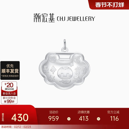 潮宏基萌吉蛇生肖足银长命锁吊坠银饰挂坠福锁包本命年宝宝周岁礼