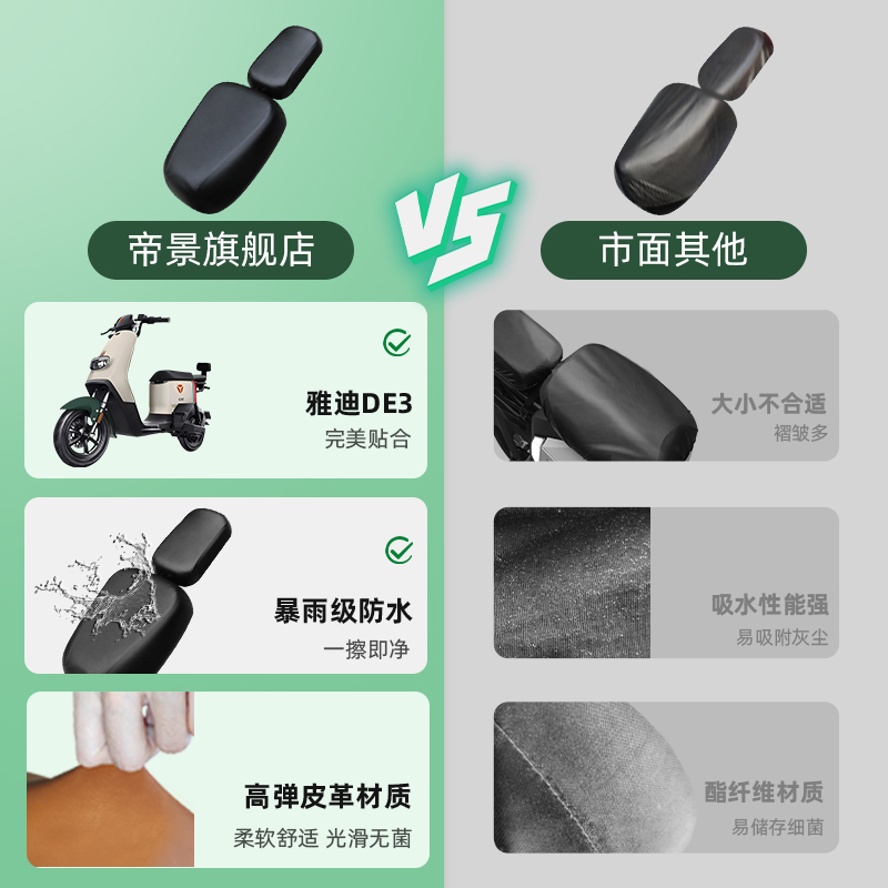 适用于雅迪de3分体短座坐垫套电动车皮革配件电瓶车防水防晒座套