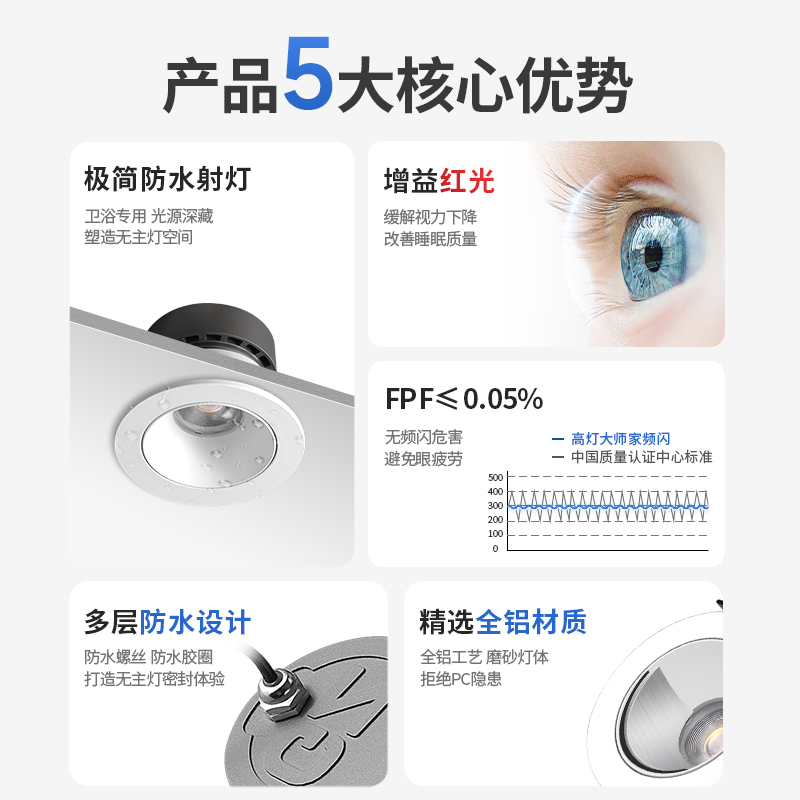 防水射灯浴室卫生间防水筒灯防雾铝扣板嵌入式天花led厨房智能