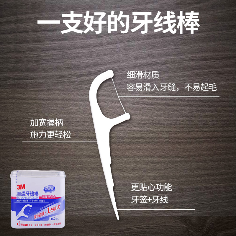 台湾3m牙线细滑牙线棒家庭装超细剔牙签便携一次性进口特细高拉力