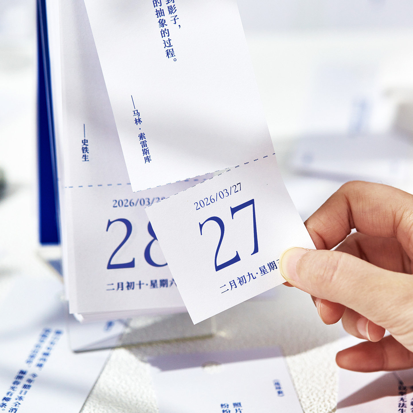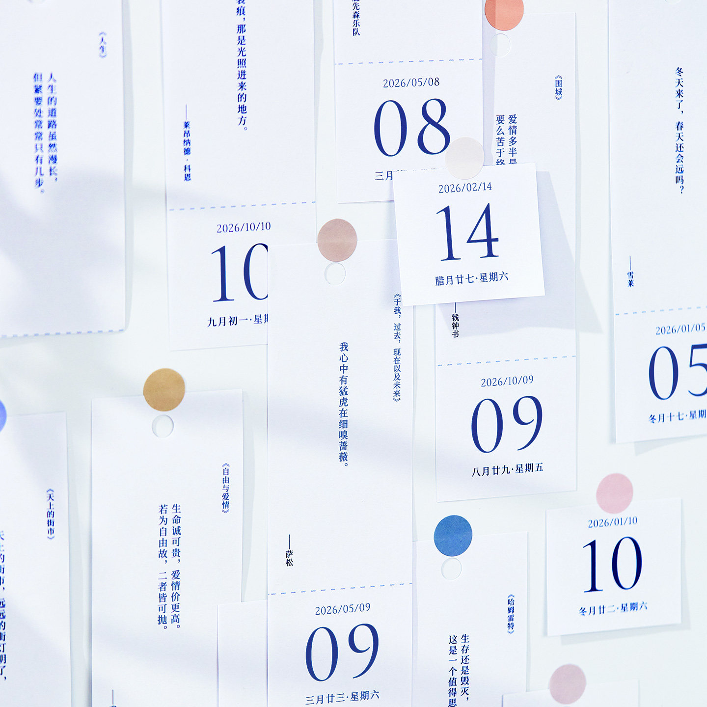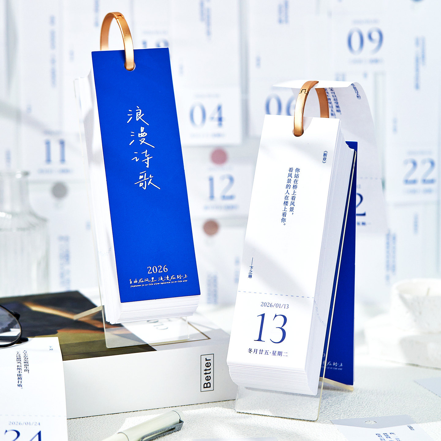 2026年浪漫诗歌日历文艺小清新蓝色ins风高颜值办公室桌面摆件学生中高考考研倒计时可撕翻页台历提醒牌定制