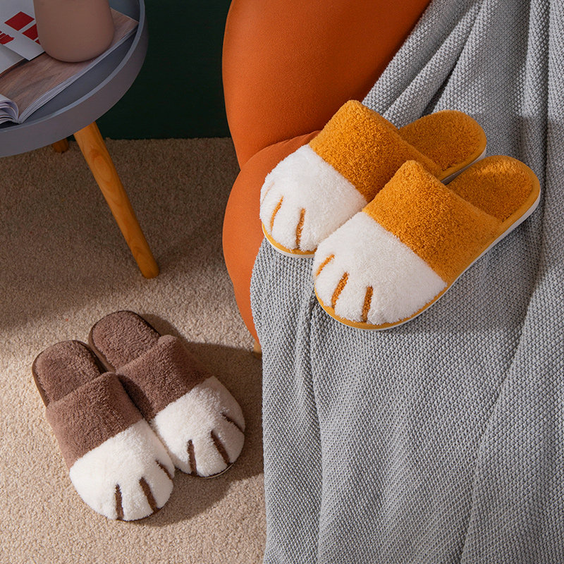 撸猫感猫爪棉拖鞋女冬季可爱毛绒家居家用冬天室内防滑情侣男拖鞋