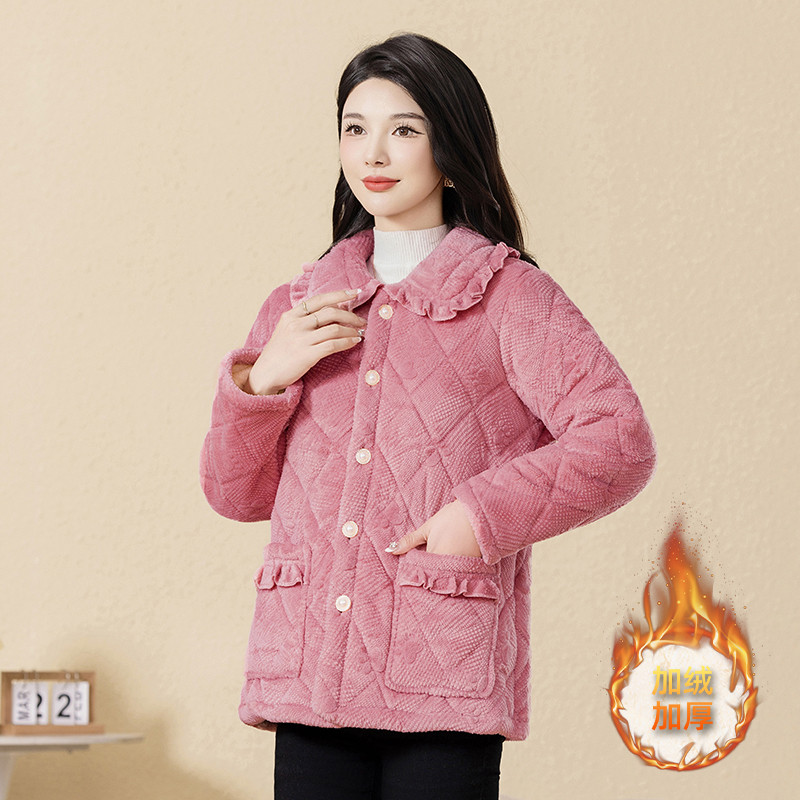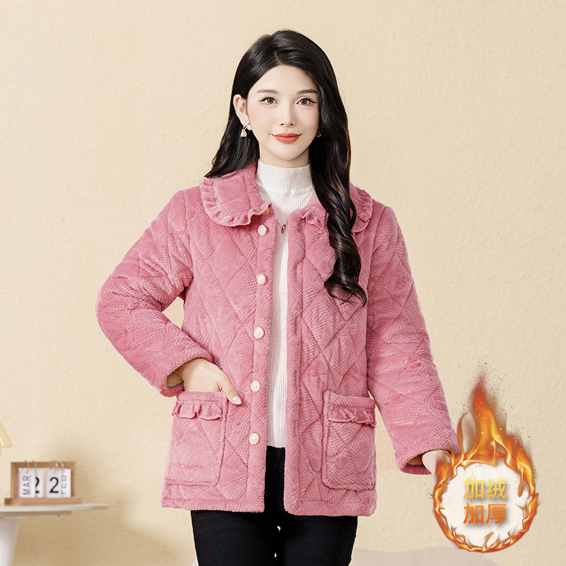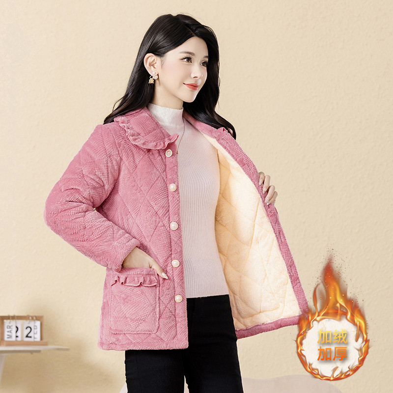 妈妈装减龄棉衣女加绒加厚保暖棉服短款罩衣时尚百搭防寒家居服