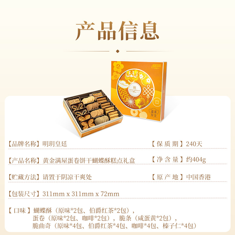 明玥皇廷黄金满屋蛋卷饼干蝴蝶酥糕点新年礼盒香港特产伴手礼团购