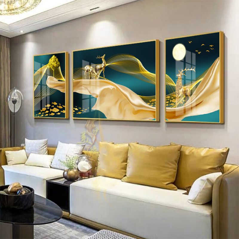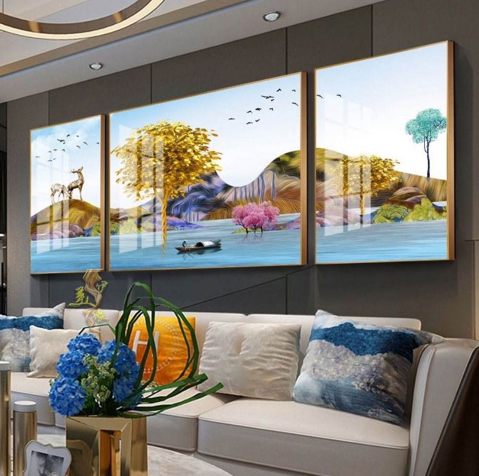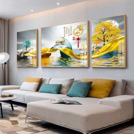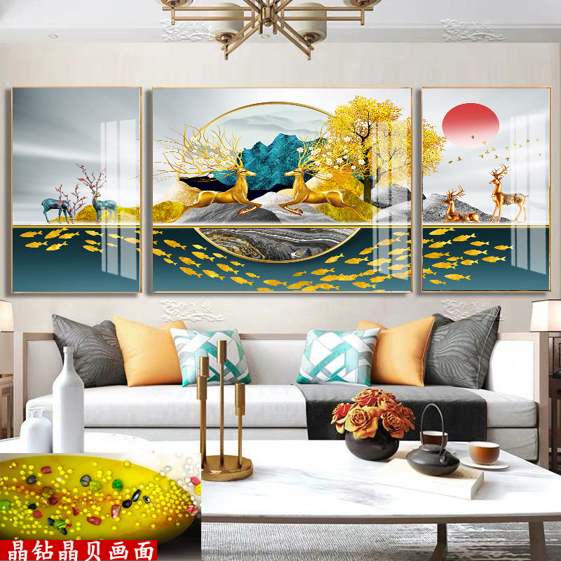 现代简约客厅装饰画沙发背景墙挂画餐厅卧室画北欧三联晶瓷晶钻画