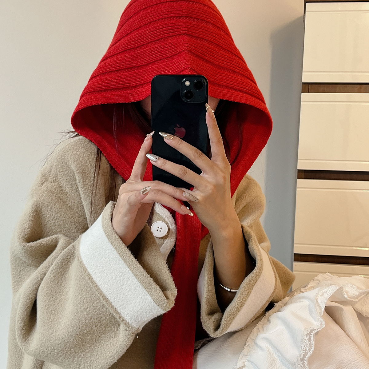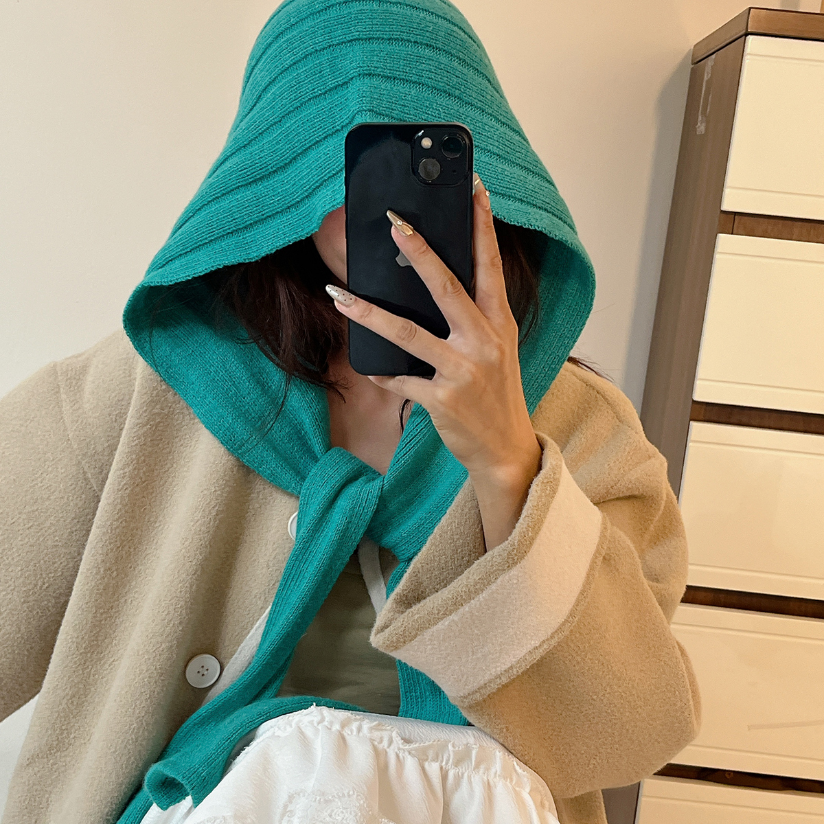 韩版小众设计感毛线针织连帽披肩女秋冬季保暖百搭多功能装饰围脖