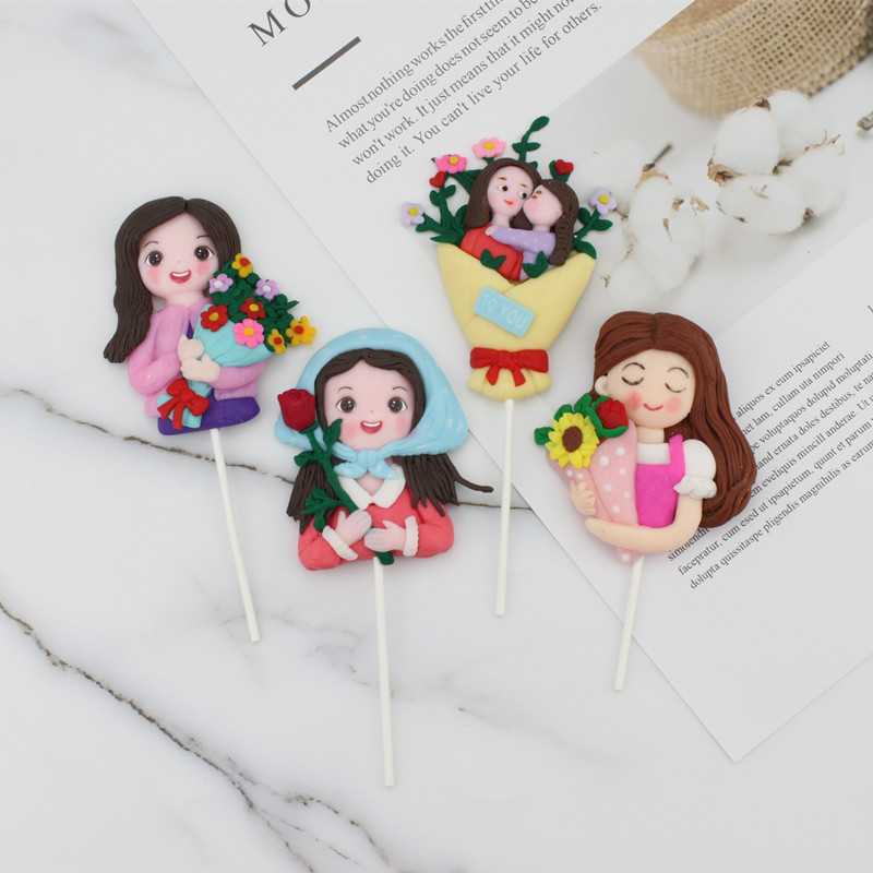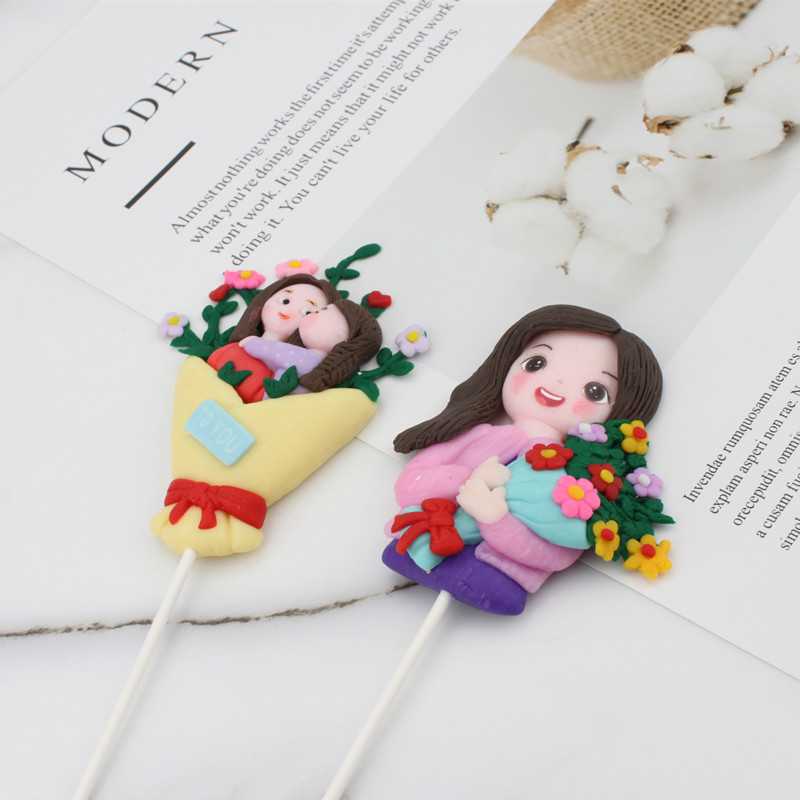 新款直销母亲节父亲节软陶人偶一家人爸爸捧花妈妈蛋糕烘焙装饰摆