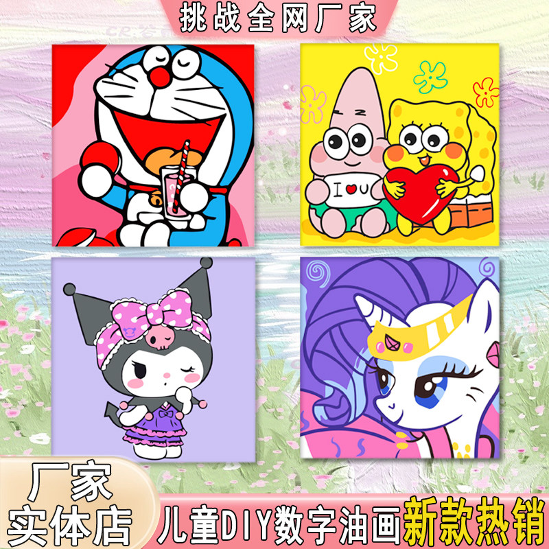 儿童玉桂狗库洛米数字油画手工diy油彩画填色画20*20全棉卡通涂鸦