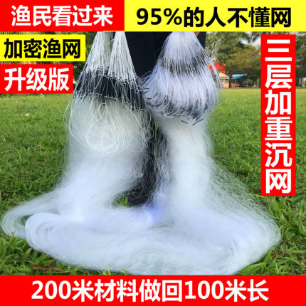 鱼网粘网三层渔网丝网捕鱼挂子网鲫鱼粘鱼加重沉网进口加密加强丝
