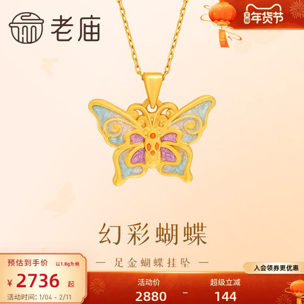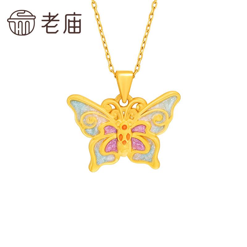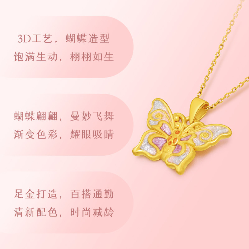 老庙黄金足金鎏彩蝴蝶挂坠3D工艺精致立体闪耀吸睛点亮日常通勤