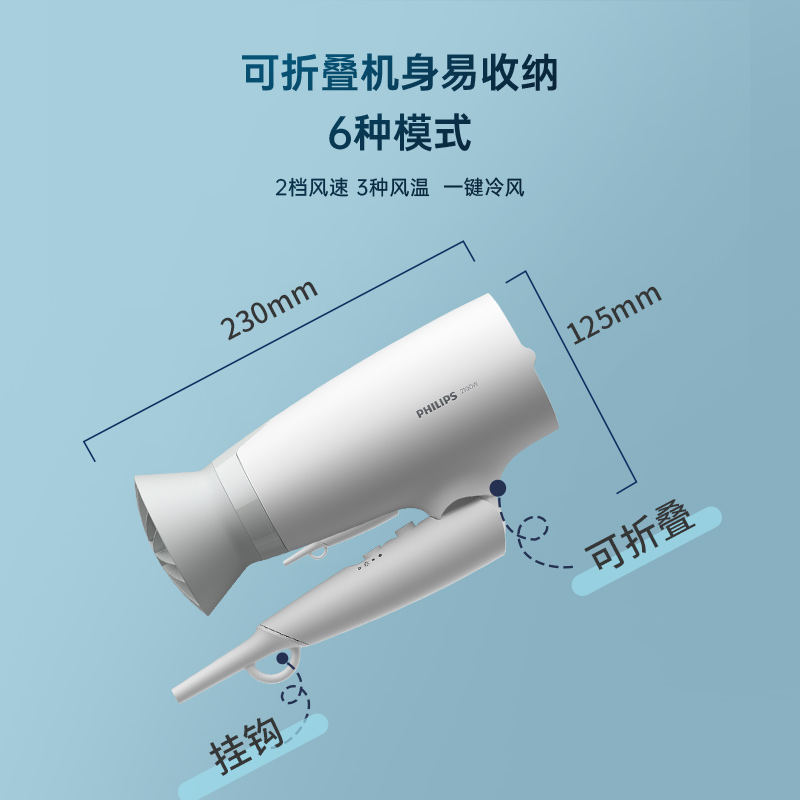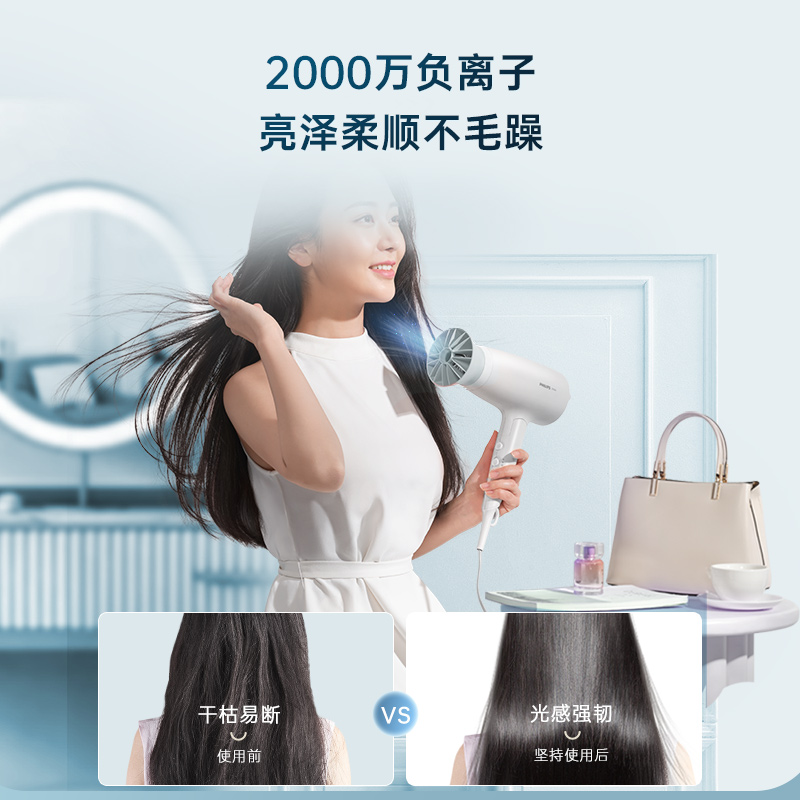 飞利浦吹风机家用负离子护发速干大风力电吹风机筒官方旗舰店正品