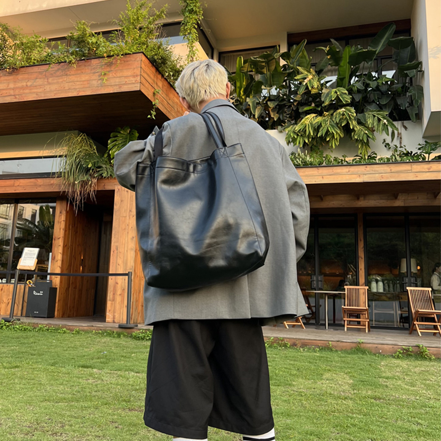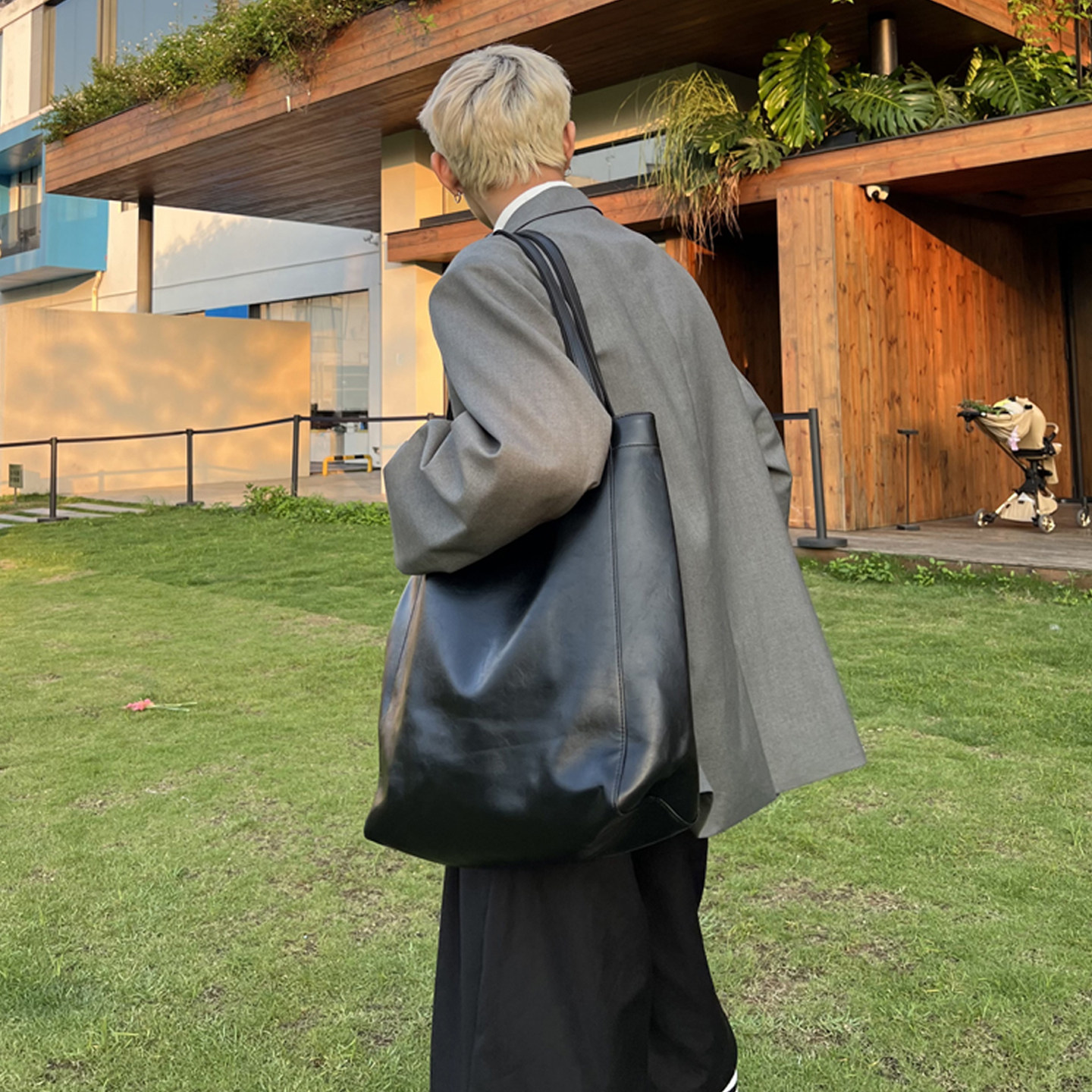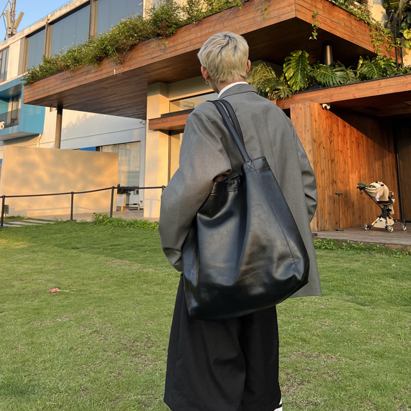 NIN原创百搭油蜡皮腋下hobo皮质托特大包男女中性风ins单肩背包潮