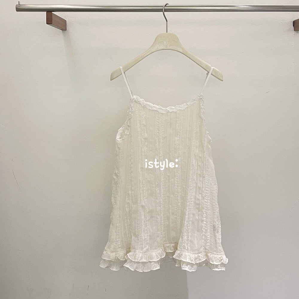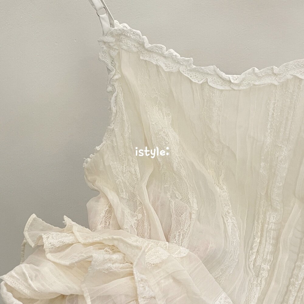 春季istyle韩版白色蕾丝背心吊带女叠穿氛围感穿搭荷叶花边连衣裙