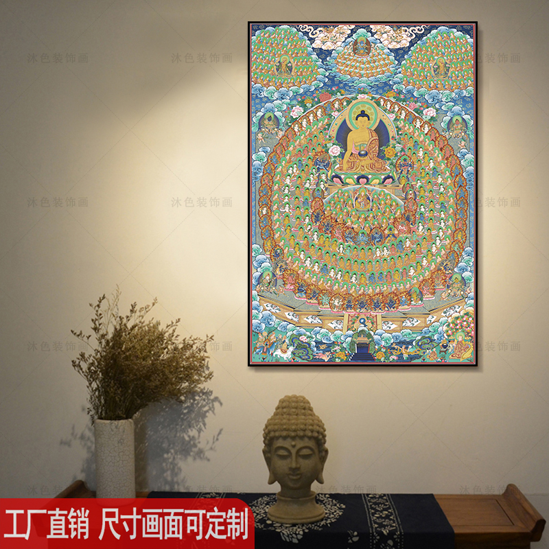 唐卡全堂佛像挂画黄财神绿度母招财壁画中式入户玄关柜风水装饰画