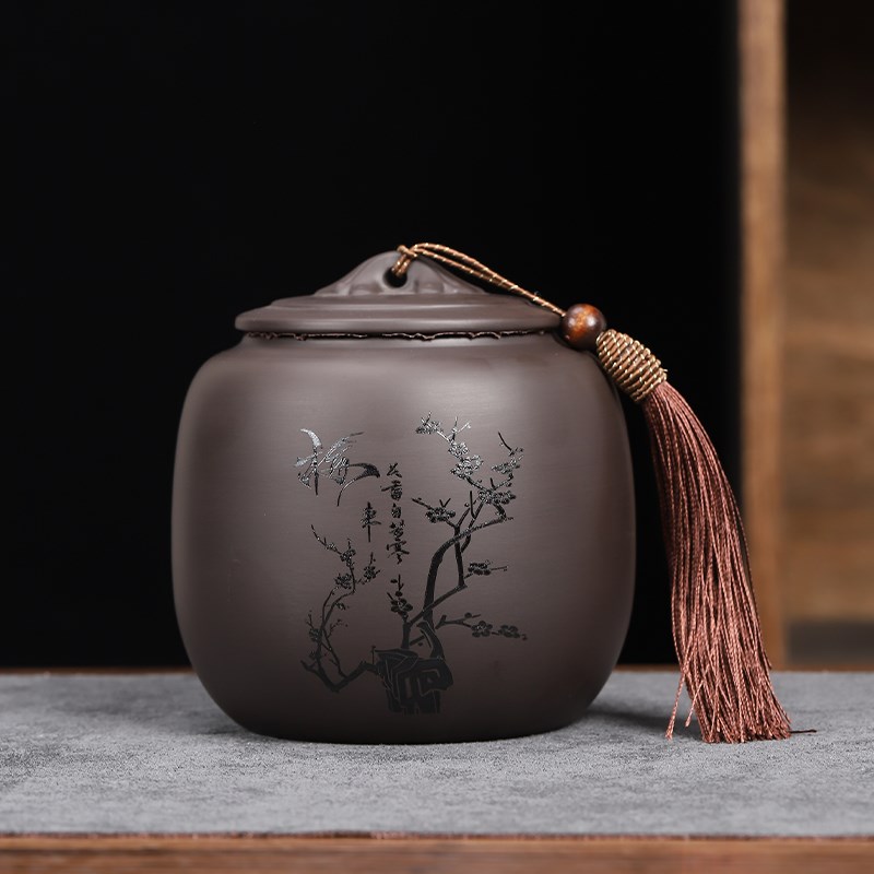南煊紫砂茶叶罐陶瓷密封罐家用大号半斤装储茶罐红茶绿茶普洱茶罐