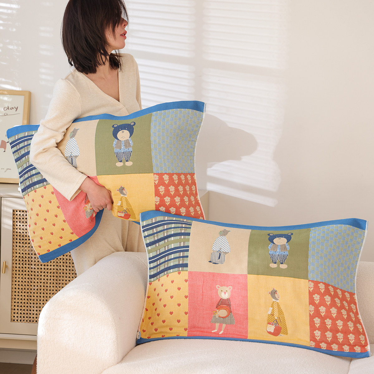 八层加厚纯棉纱布枕巾一对装透气吸汗情侣卡通全棉成人家用枕头巾