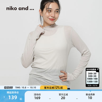 niko and ...打底衫女2025秋季新款木耳边半高领薄款上衣496279