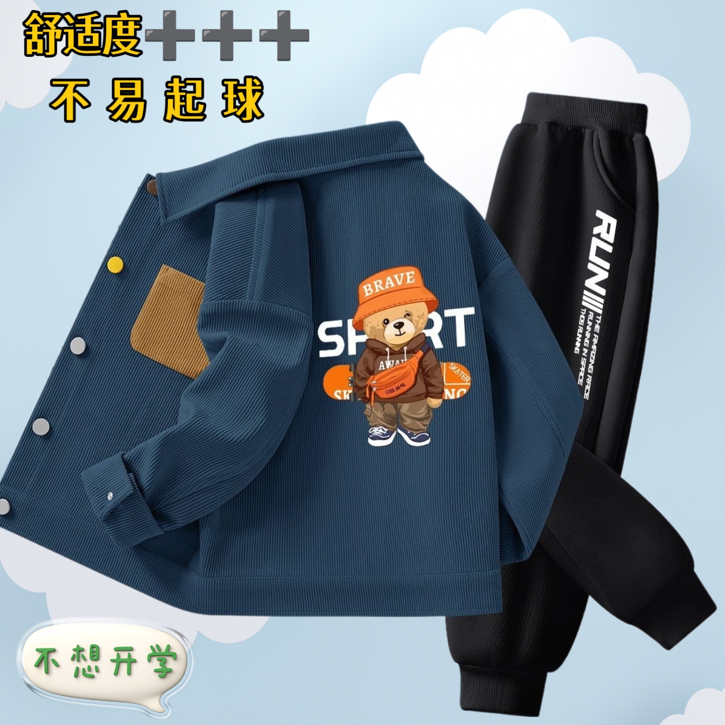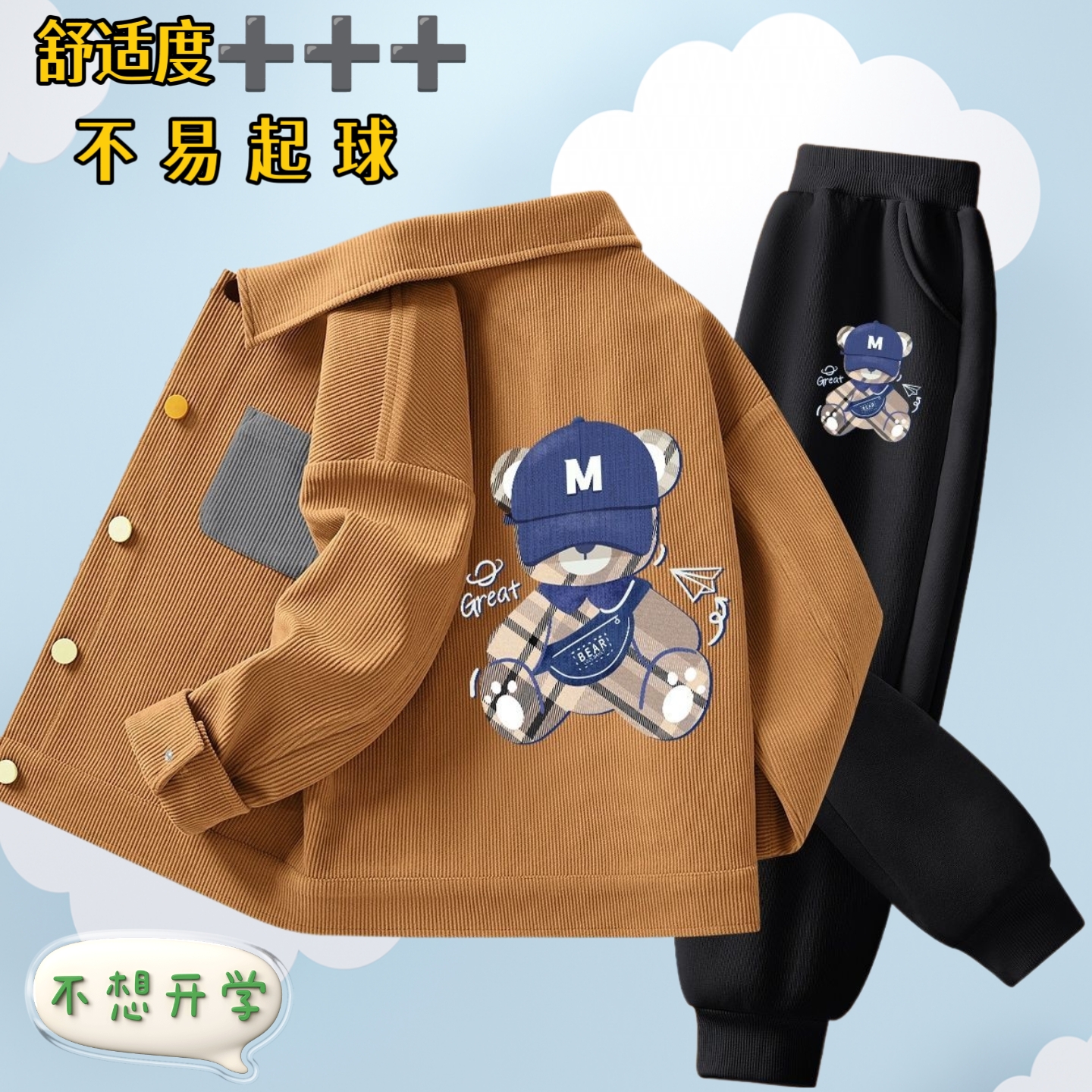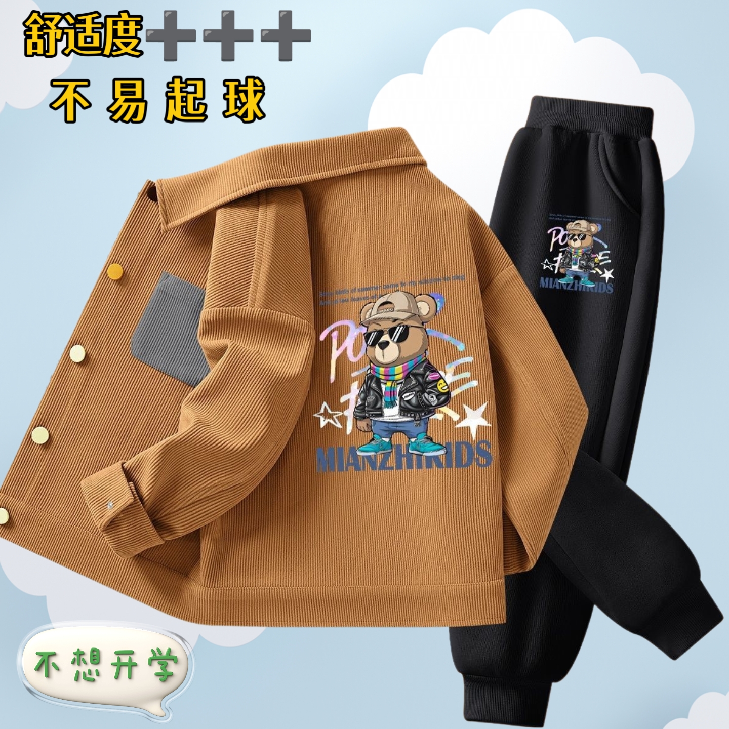 儿童洋气撞色灯芯绒衬衫男童外套春秋款2025新哪吒图案上衣夹克衫