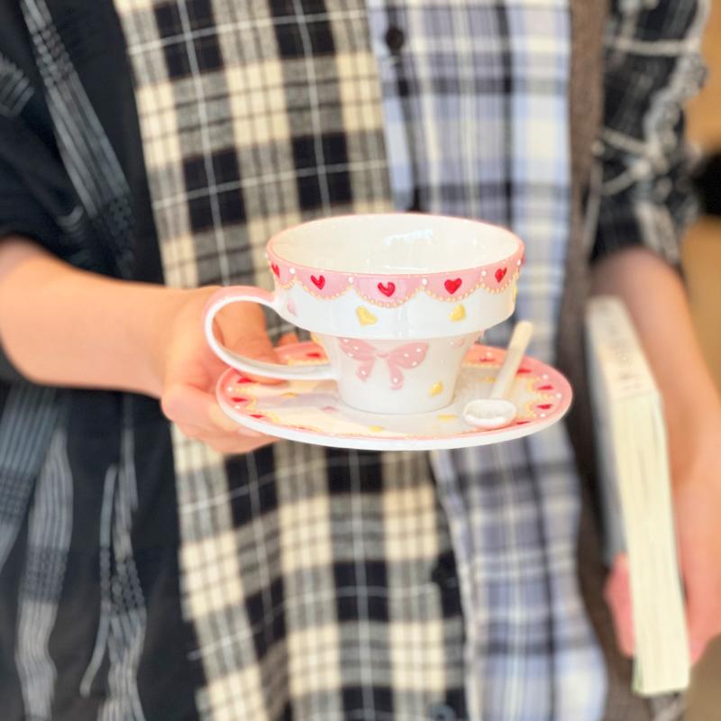 高颜值少女心蝴蝶结杯碟陶瓷杯套装精致高级咖啡杯女生礼物伴手礼
