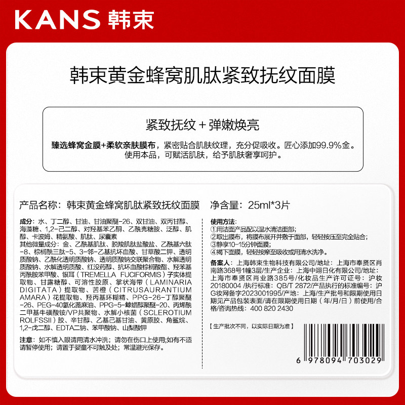 【全新升级】韩束金刚侠面膜3.0抗皱紧致补水修护舒缓提亮
