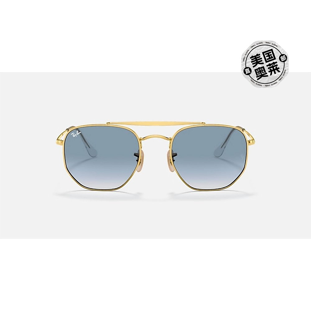 自营ray-ban男士Marshall太阳镜,金边浅蓝色镜片 美国奥莱直发