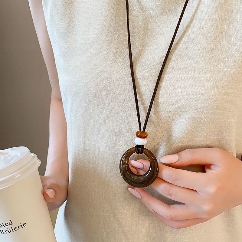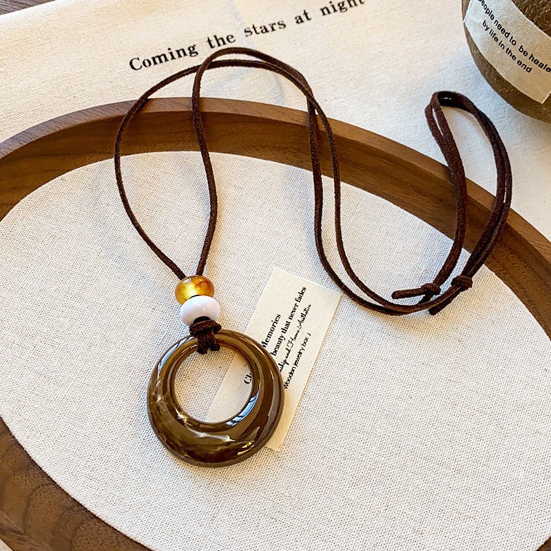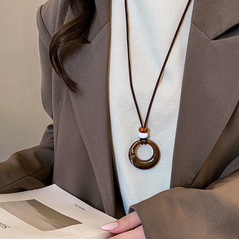 秋冬季复古长款棕色圆环吊坠项链女2025新款高级感轻奢小众毛衣链