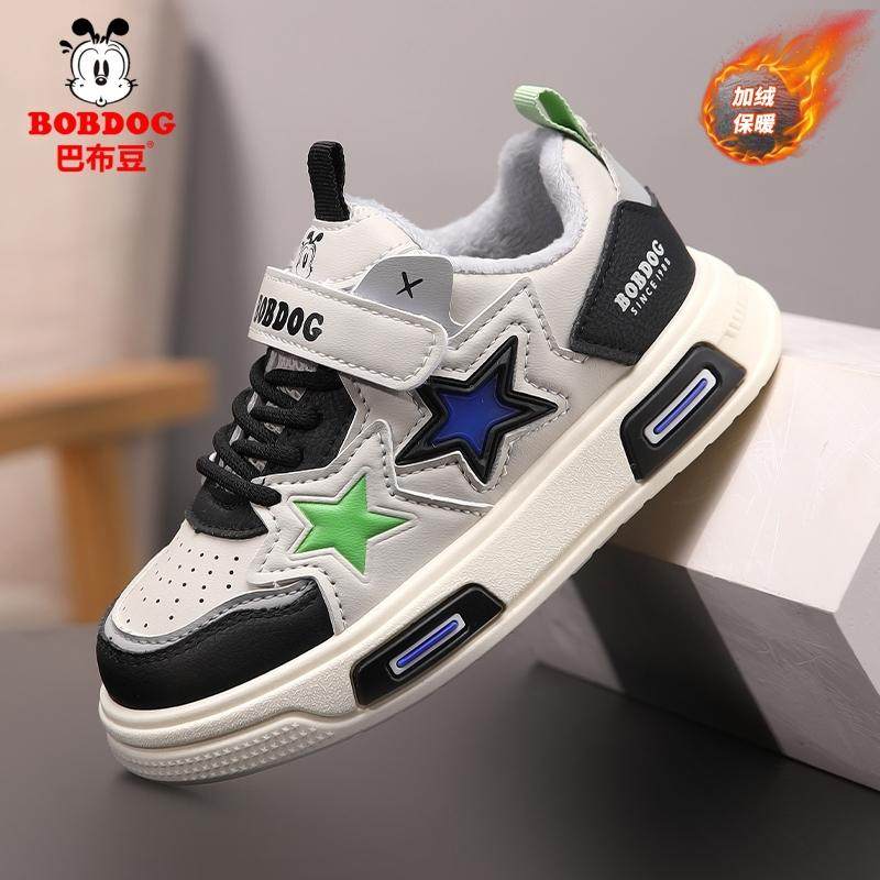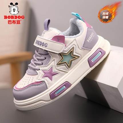巴布豆女童板鞋低帮2025新款秋冬季加绒二棉保暖时尚儿童运动鞋